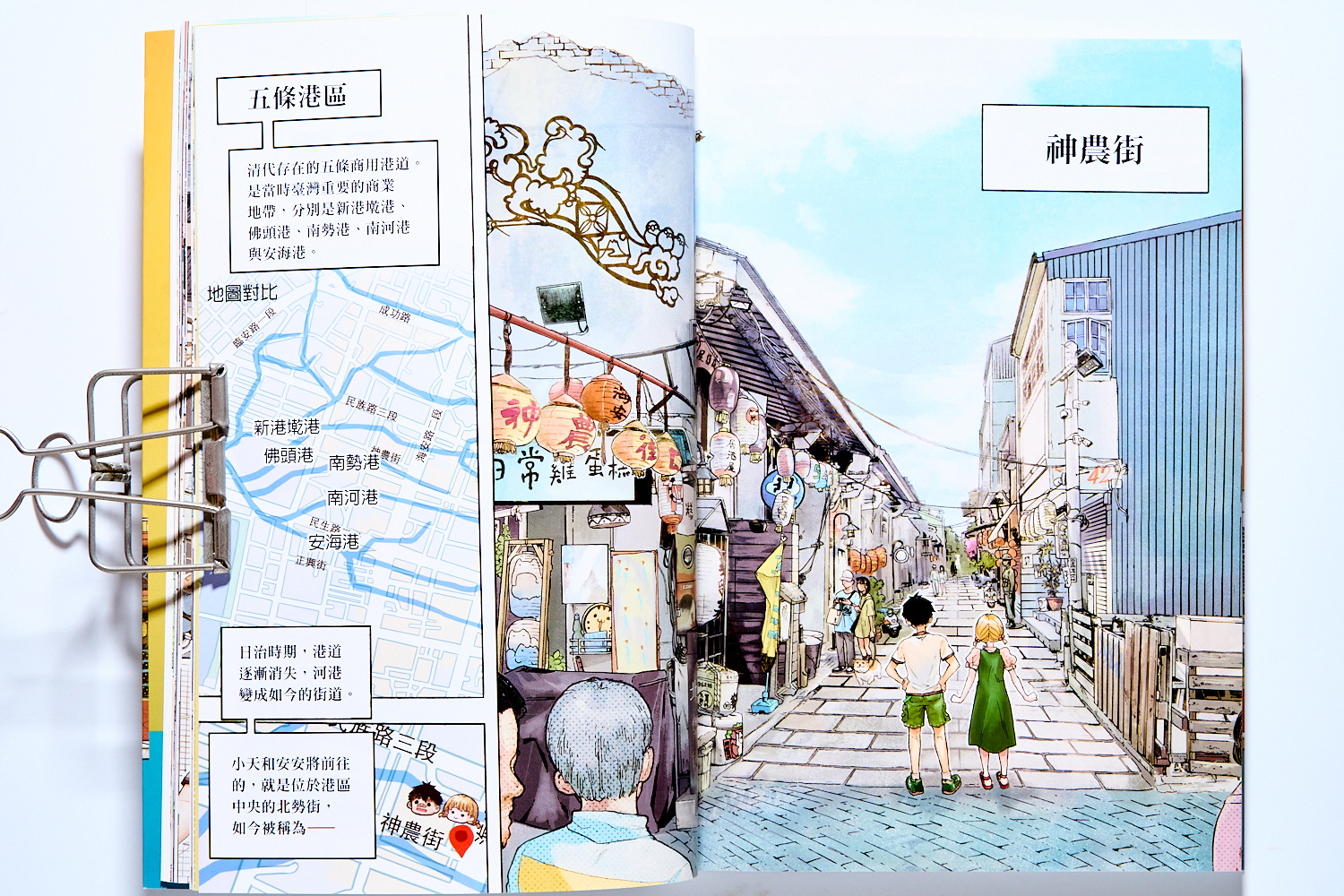 因此,這本漫畫其實也是一本旅遊地圖,又或是像主角爸媽一樣是出身臺南、在外地工作的家長,透過這本漫畫和小朋友分享家鄉回憶。