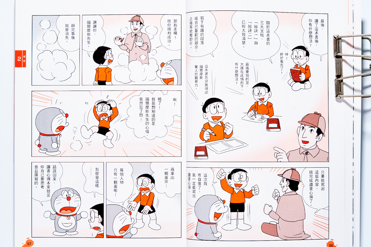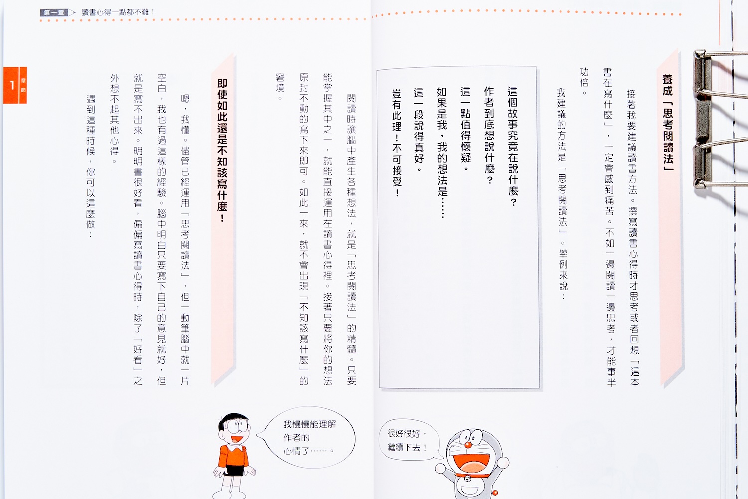 哆啦A夢透過SOP與模板,由淺至深、手把手教孩子寫出閱讀心得。