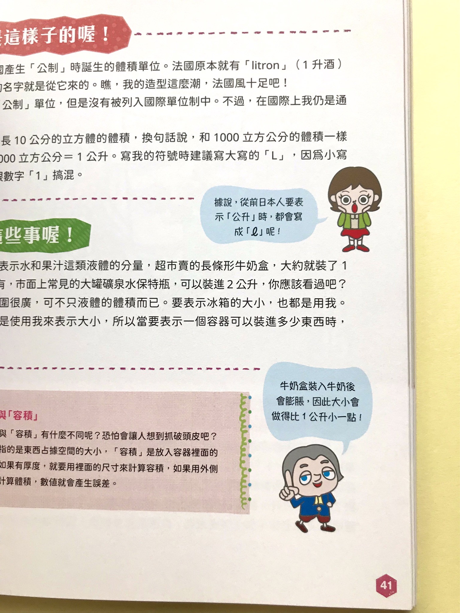 由於是日文翻譯書,書中有提到一些日本專有的單位。我覺得就是當新鮮知識看看也蠻好玩。推薦給想學習單位區別的孩子~
