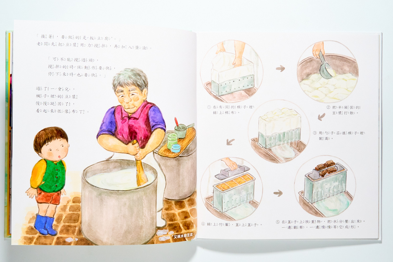 從現代機器到傳統石磨,這四本繪本帶孩子看見黃豆變身豆腐的奇幻過程,讀懂科學原理與藏在豆香裡的家庭回憶。