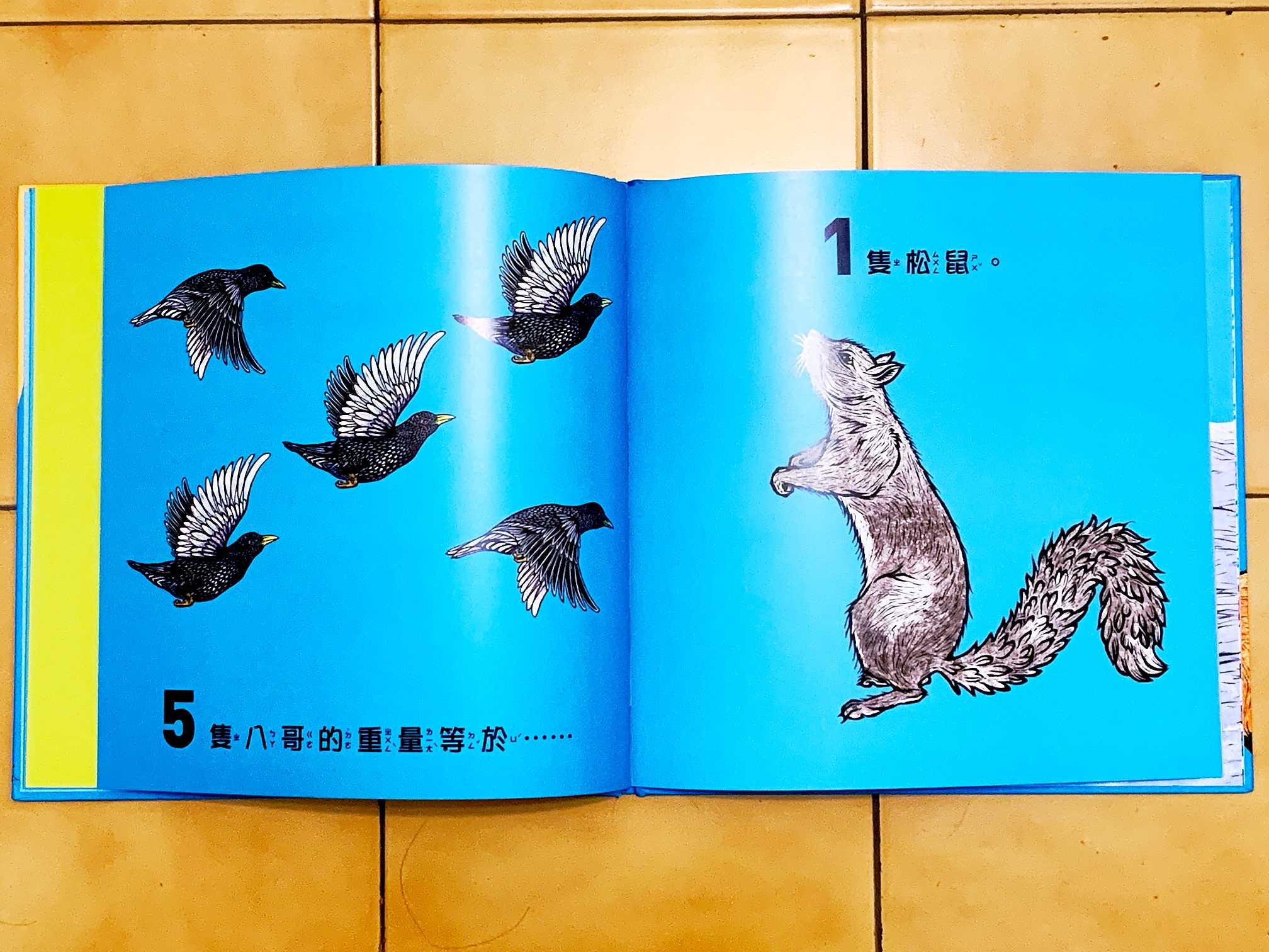 《驚奇的動物數學課》就是利用比較的概念,跟著可愛的動物、有點可怕的恐龍,隨著節奏韻律的文字,從 10 數到 1 或是從 1 數到 10 ,翻頁感受不同高度、重量、距離、大小和快慢概念。