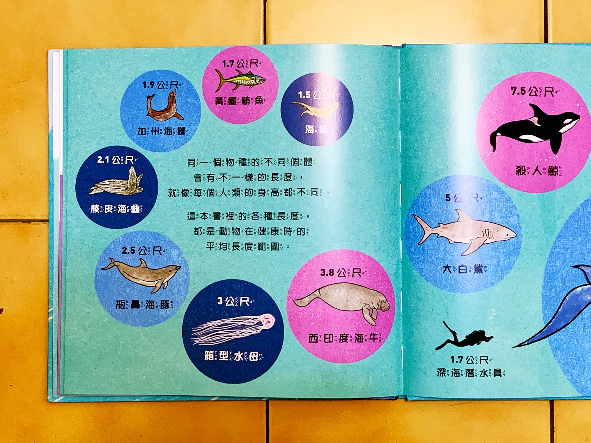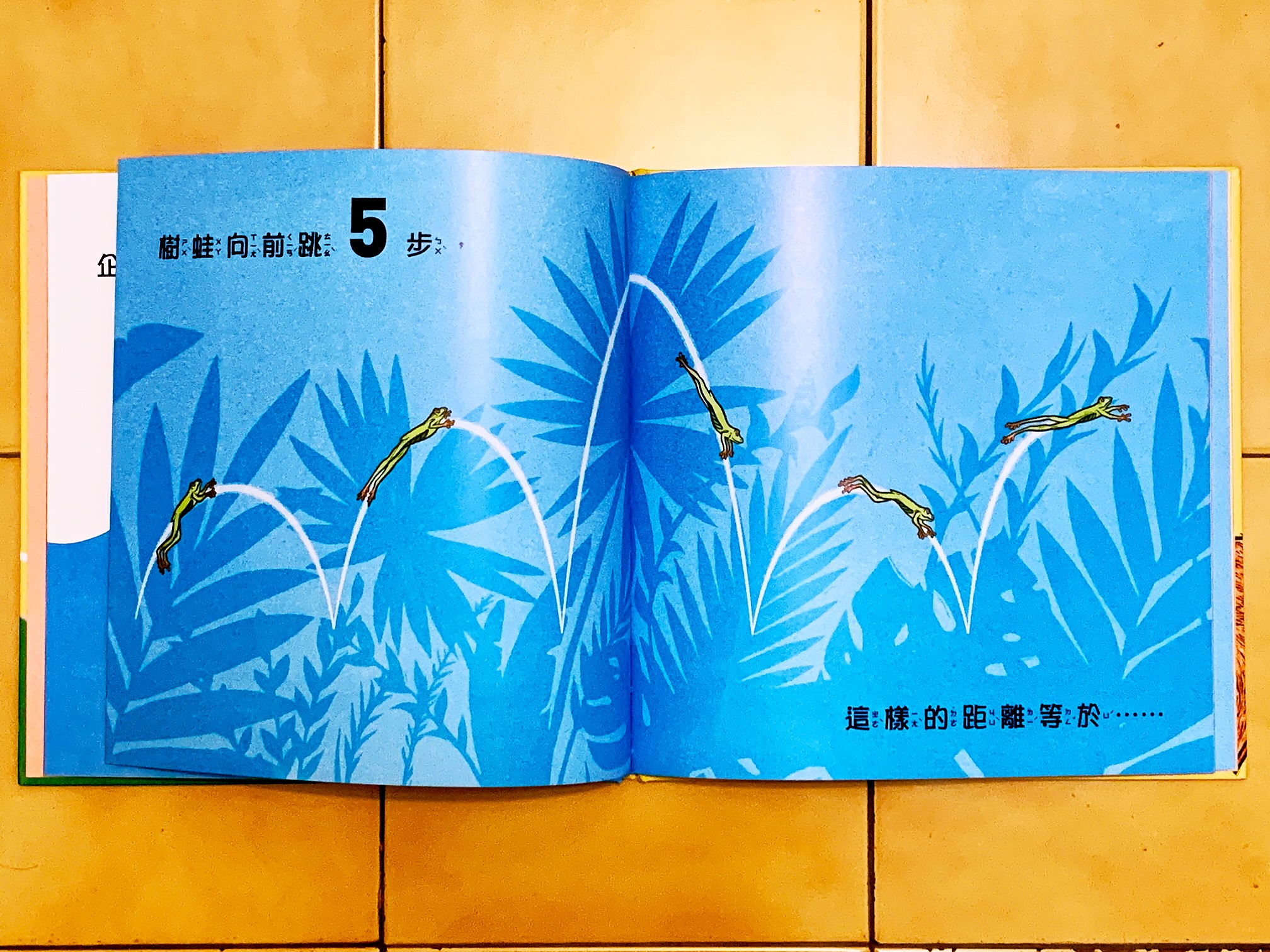 有趣的是,每本書閱讀節奏都不同,像是數字交響樂,也暗藏許多值得玩味的梗,像是講袋鼠跳多遠時,請小朋友比較,每種動物跳一步的距離和動物身高。和孩子討論看看『真正的跳遠高手』是跳最遠的,還是跳得比自己身高還遠呢?