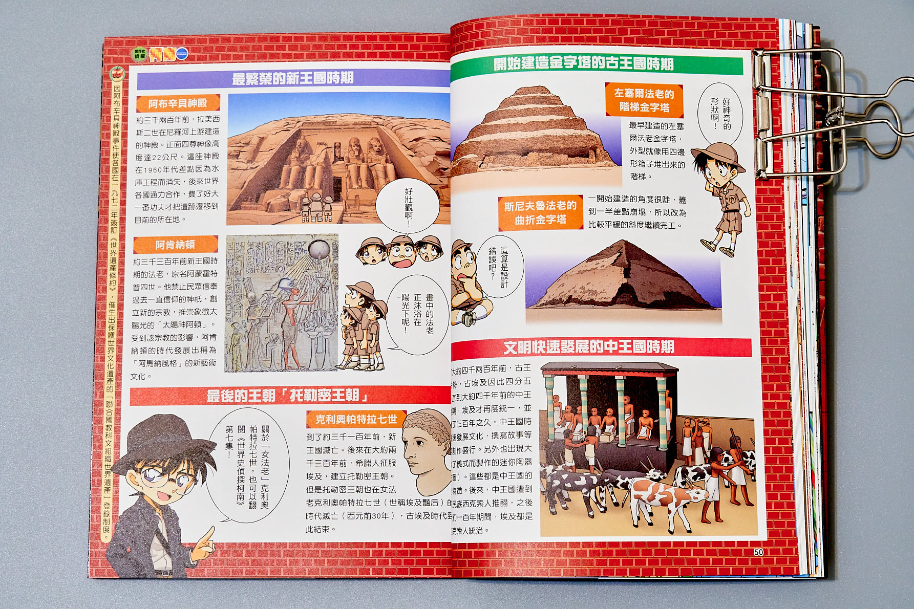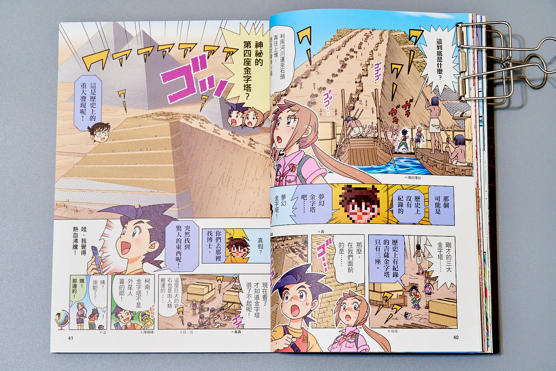 知識方面,在每一話後面會集中介紹,像是金字塔的歷史背景:尼羅河流域的古文明。金字塔怎麼建造:其實當初金字塔是有貼磁磚(石灰岩),白白亮亮;可不像現在坑坑巴巴、土土的。