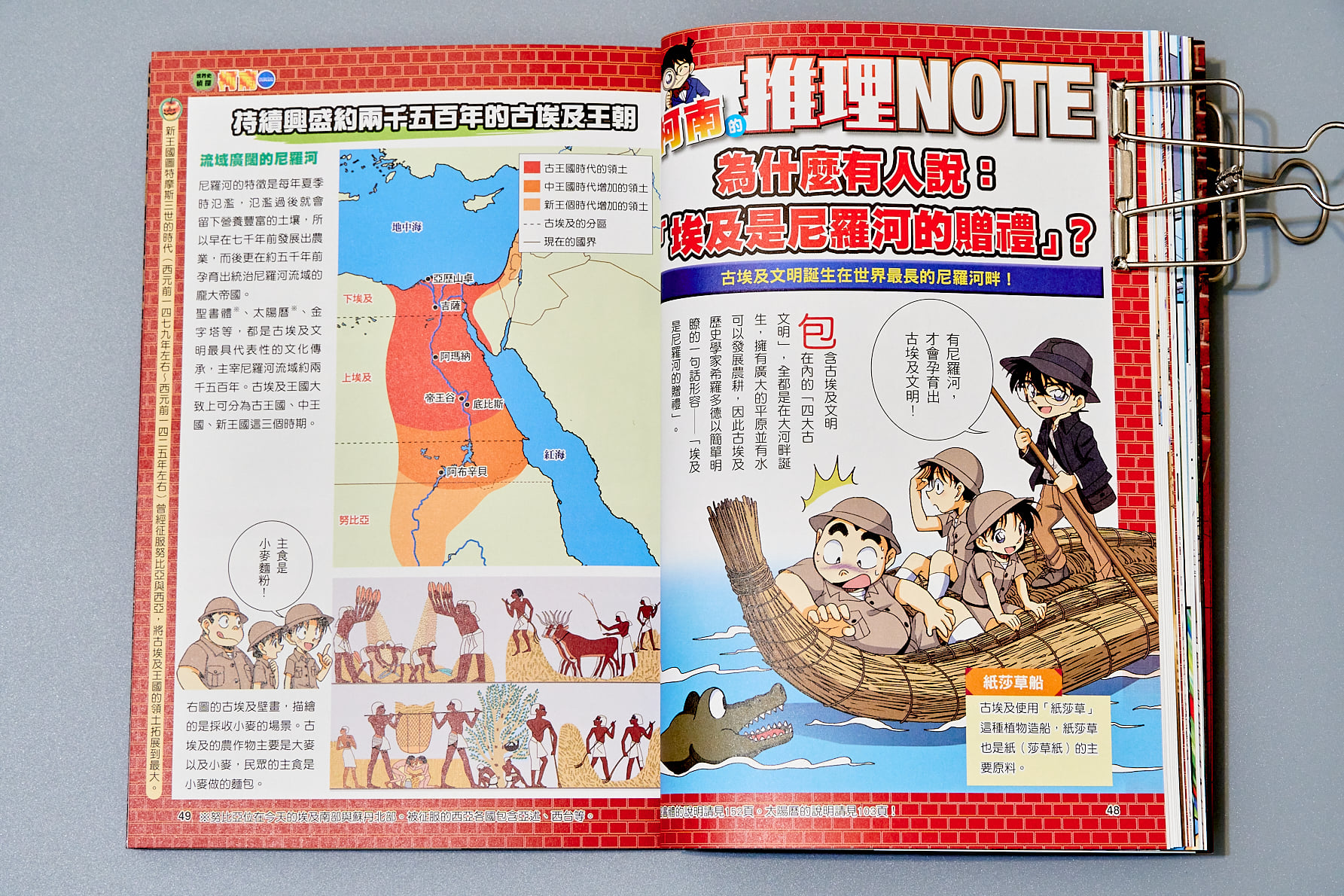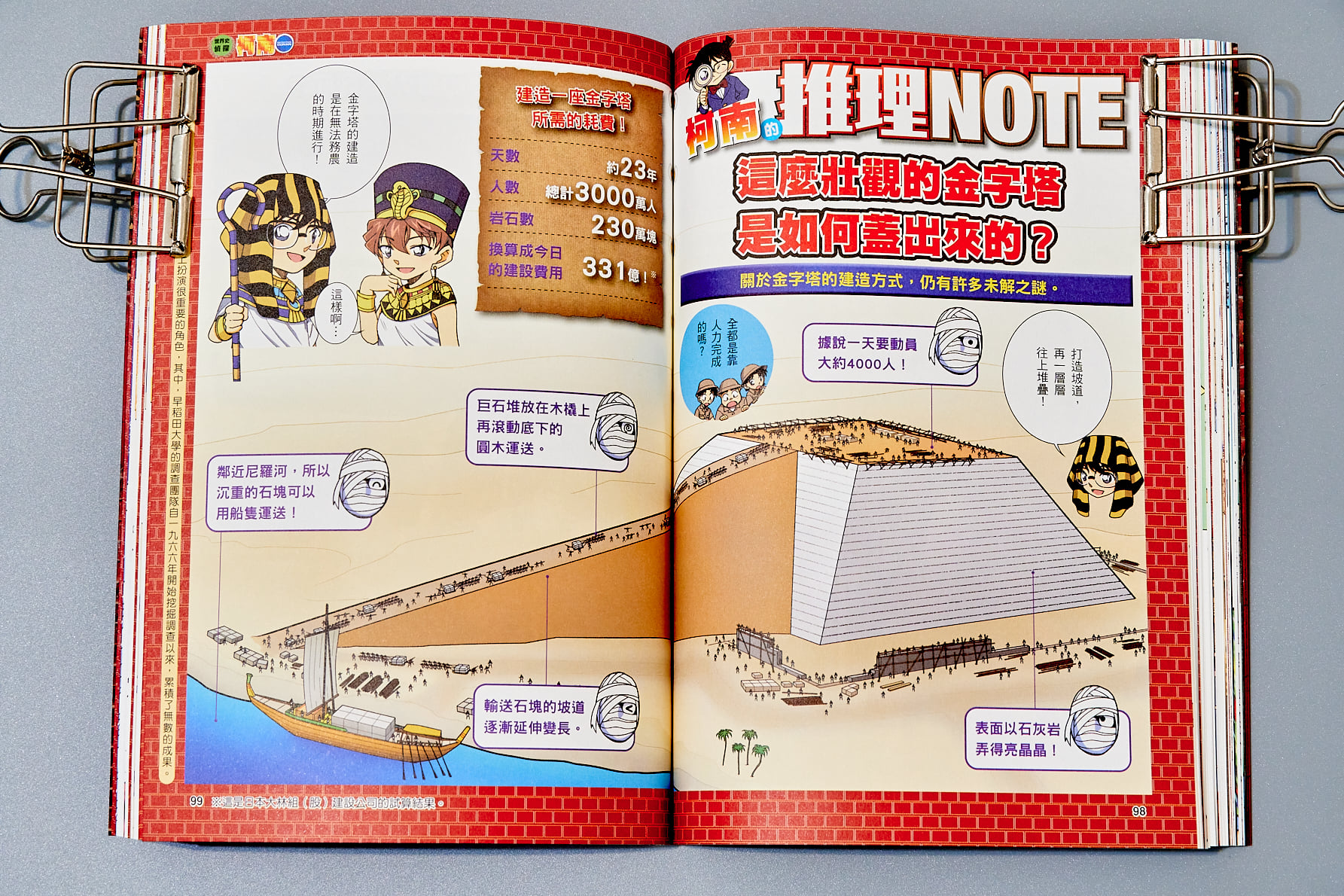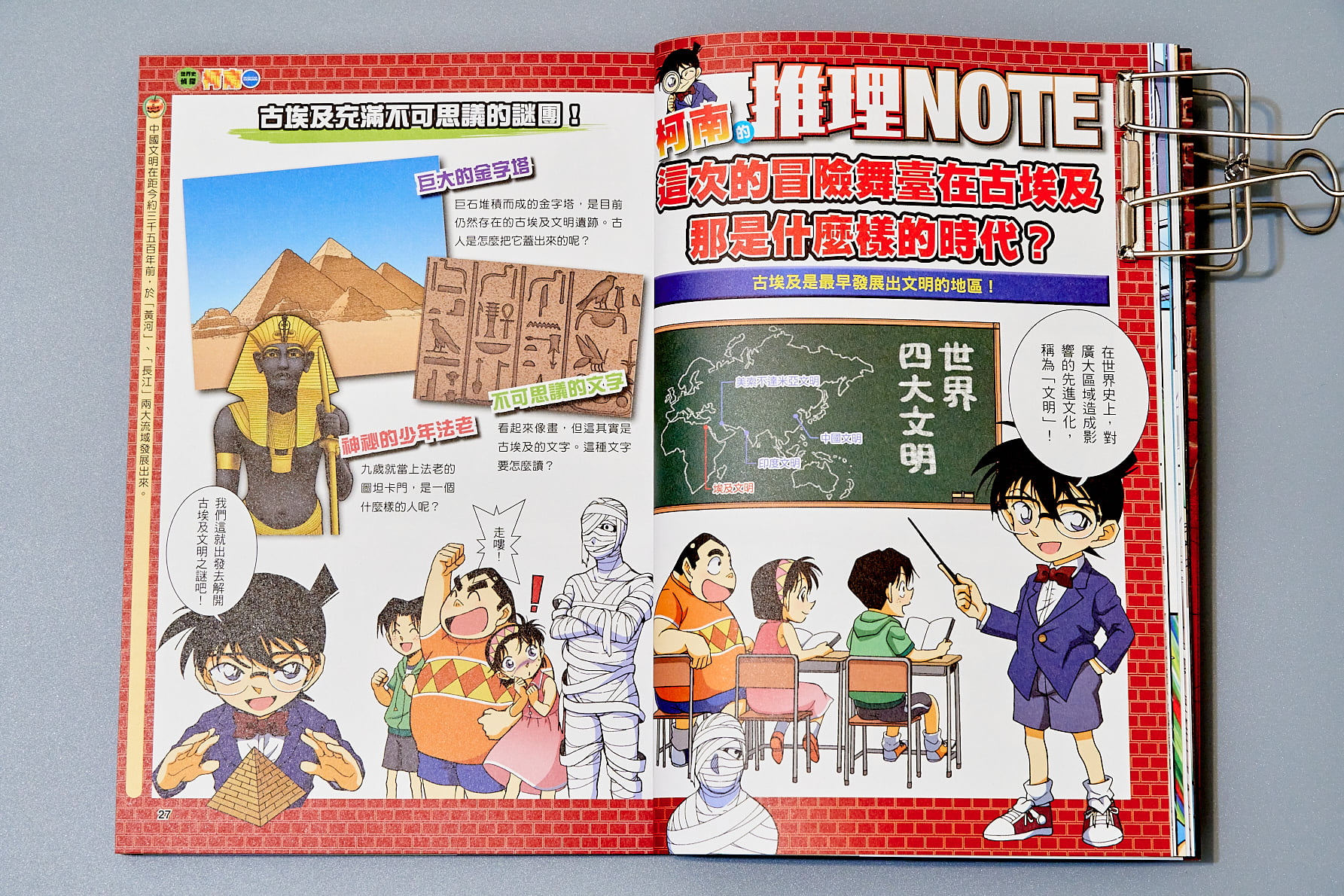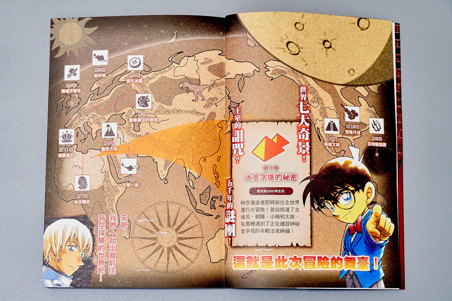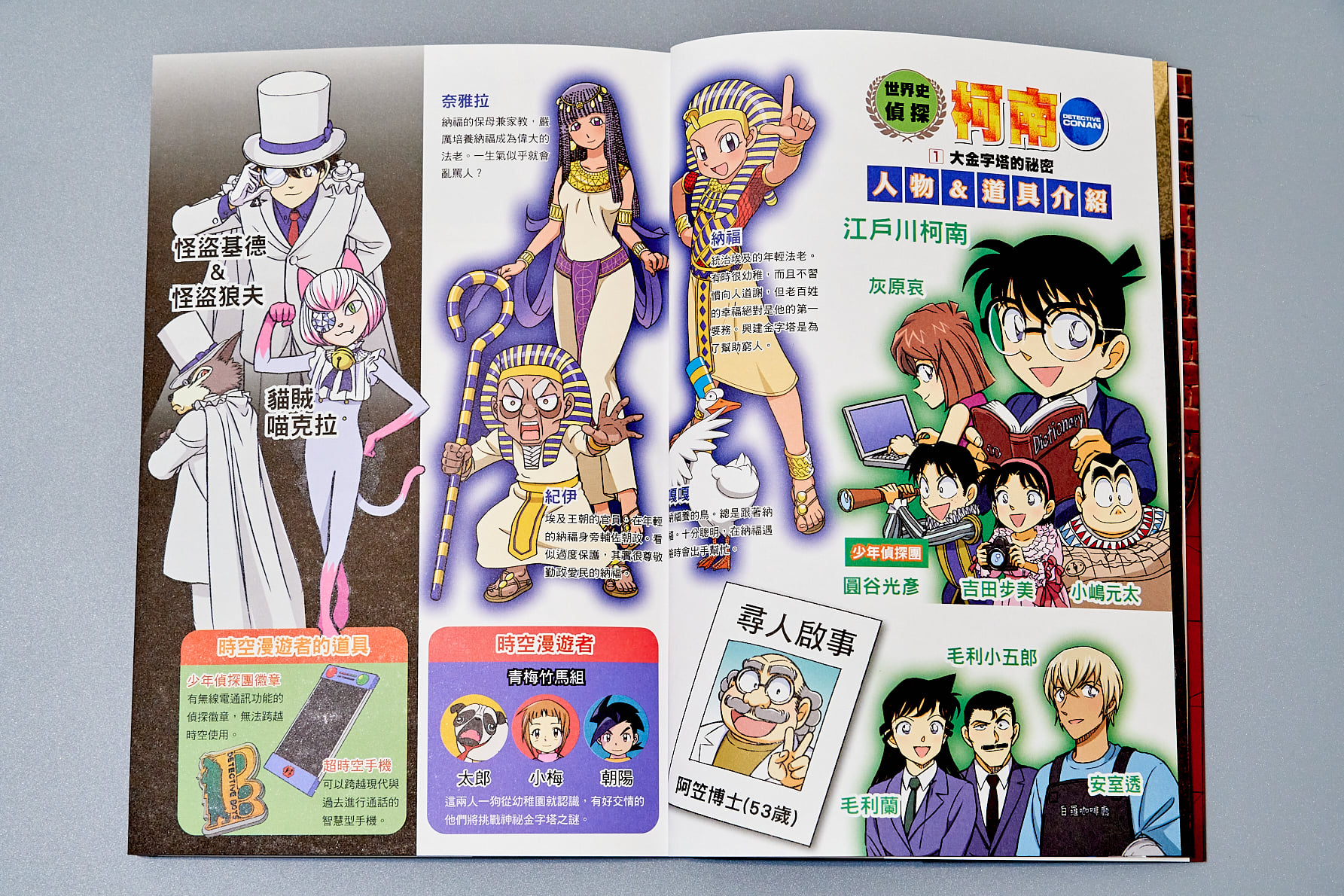 《世界史偵探柯南1:大金字塔的祕密》和其他的柯南書一樣,都是結合漫畫與知識。雖然書名有大大的柯南,但是這幾乎沒有出場機會,全部交給時空漫遊者(應該是被柯南挖洞陷害的😆)。