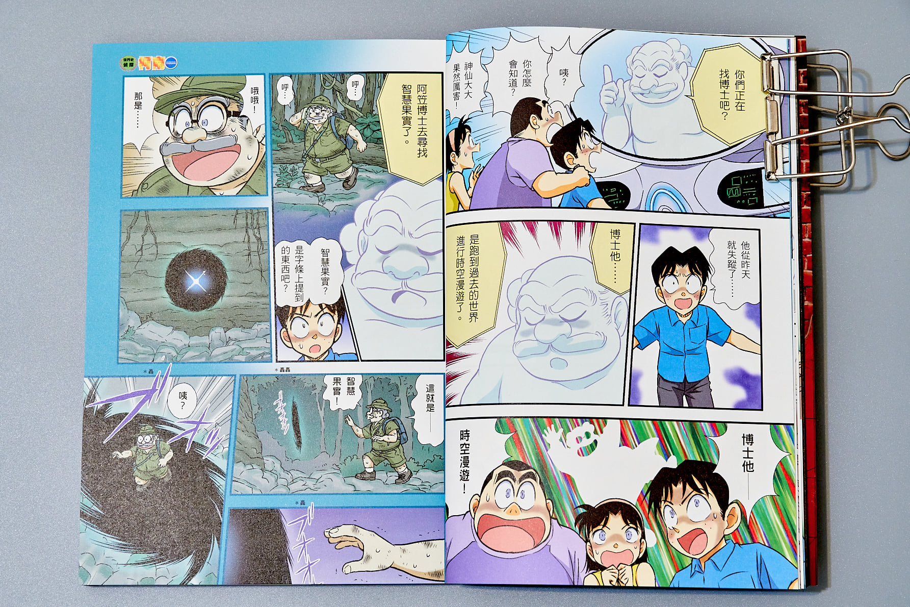 故事就一下子交棒給時空漫遊者身上,也是他們擔任冒險主角,替柯南與博士找回智慧果實。至於時空漫遊者怎麼會出現,或許之後有伏筆,也或許在這個系列之前的書就有交代(但是出版社可能沒出)。