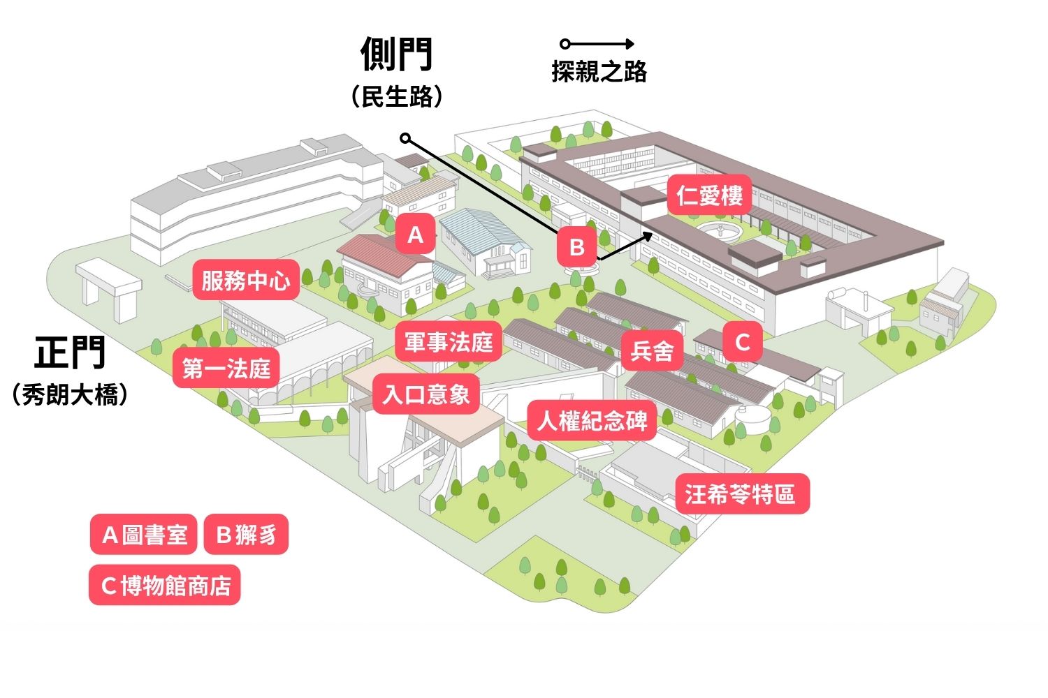 白色恐怖景美紀念園區導覽地圖(地圖修改自國家人權博物館)