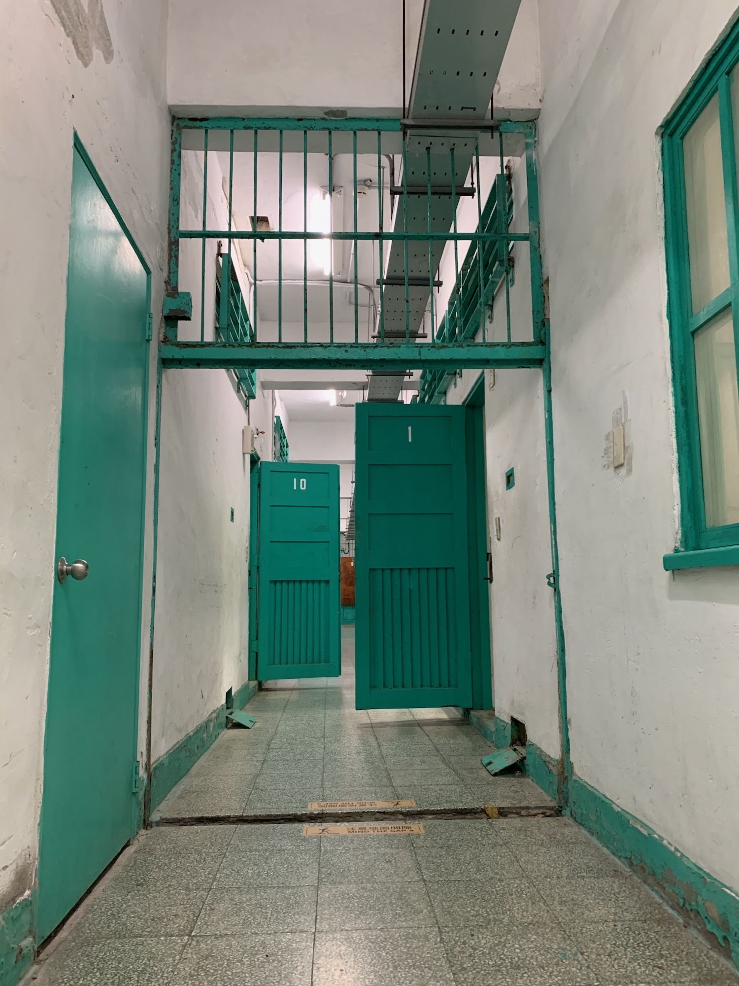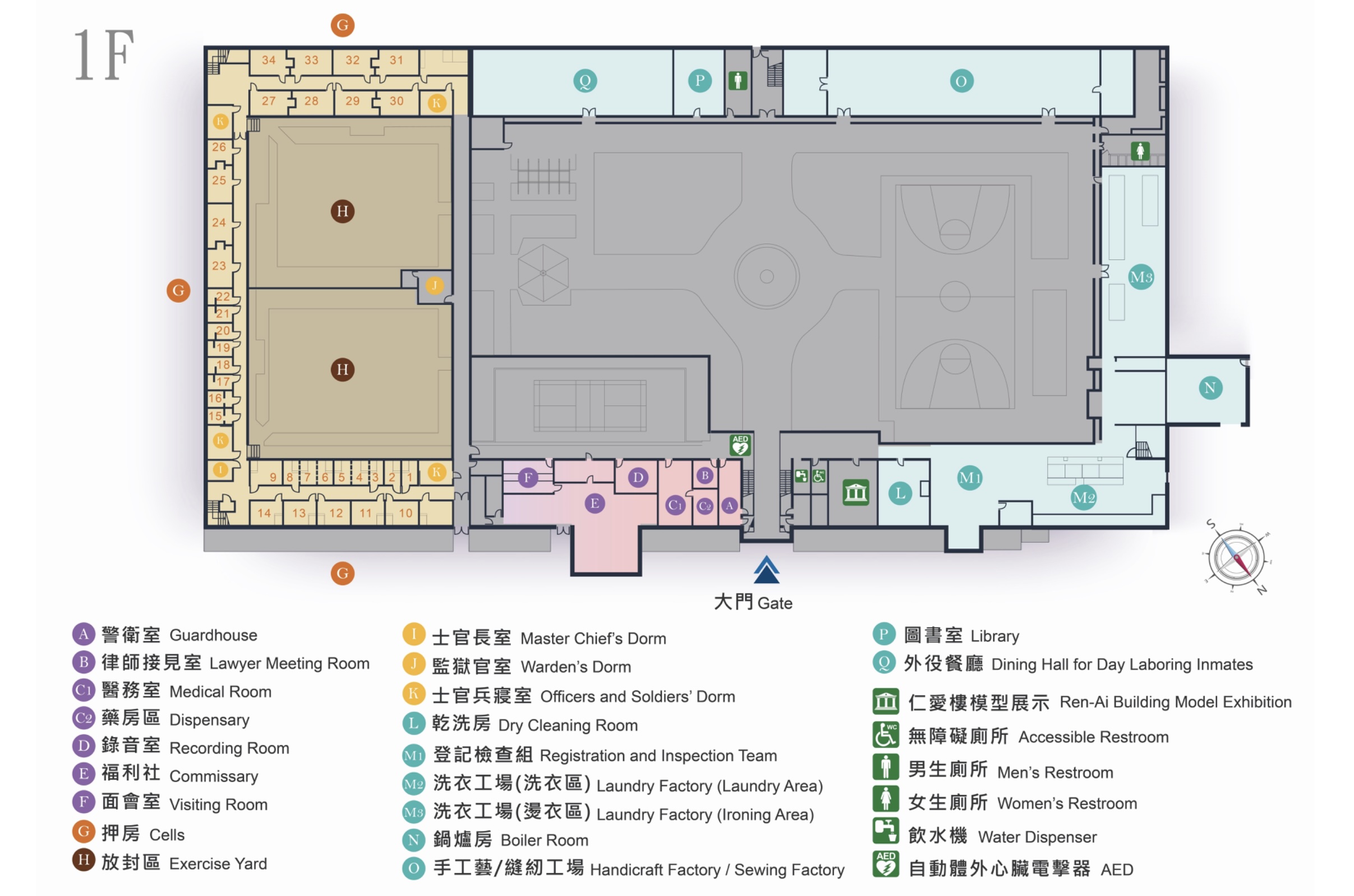 - 進入大門後,可以先往左手邊走,一路走過、警衛室、醫務室、面會室、福利社等等。這段路有兩個重點: