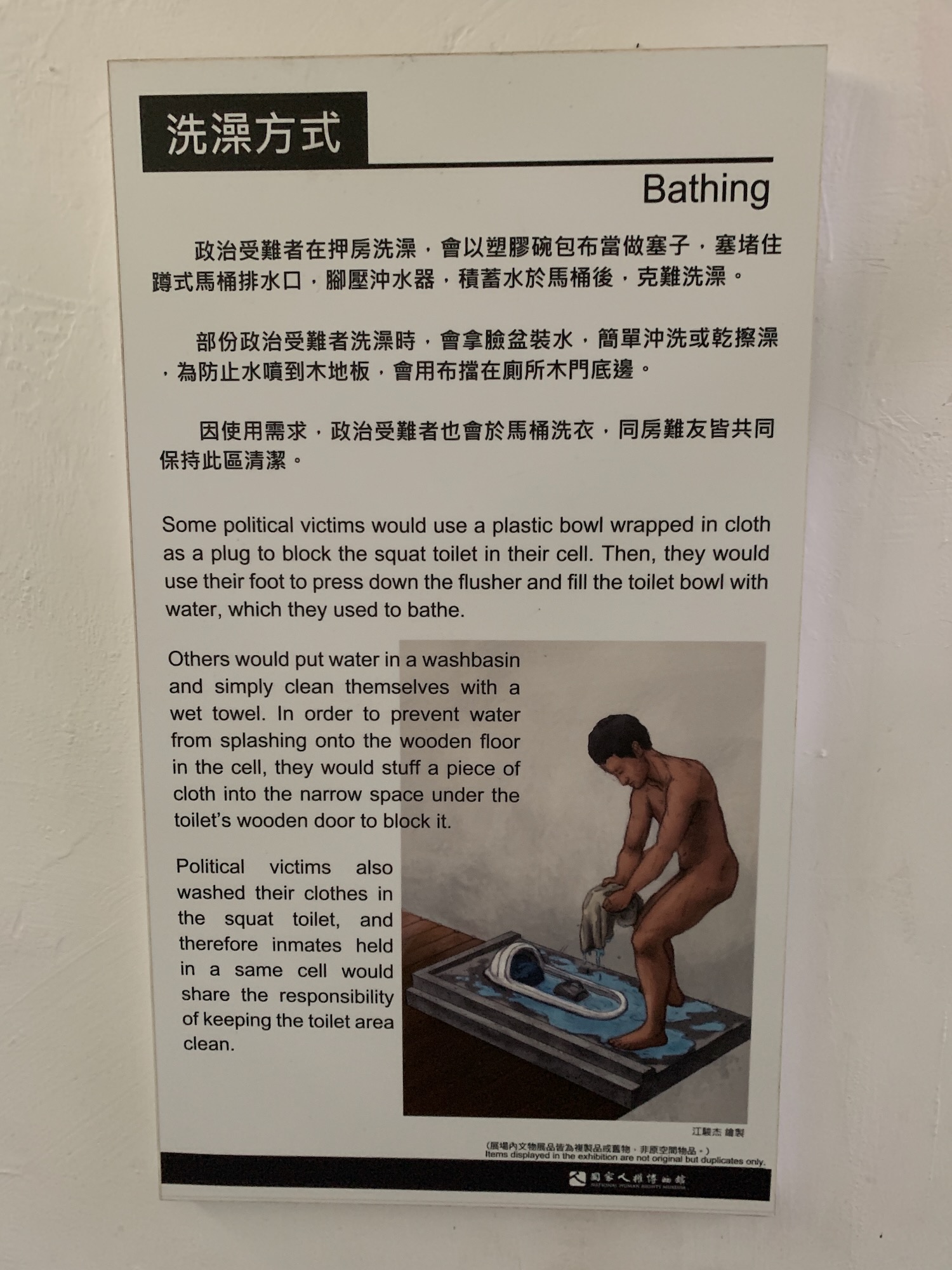 接著拐個小彎,進入有如無底洞的押房,也是受難者主要的生活區域。他們在這裡度過大多數的日子,小小的押房裡擠著滿滿的人,押房內除了留有原有的擺設外,館方也設置了詳細解說牌。在這艱苦的生活裡雖然可以看見前輩們的各種打發時間的巧思,但依然讓人感到心頭一酸。
