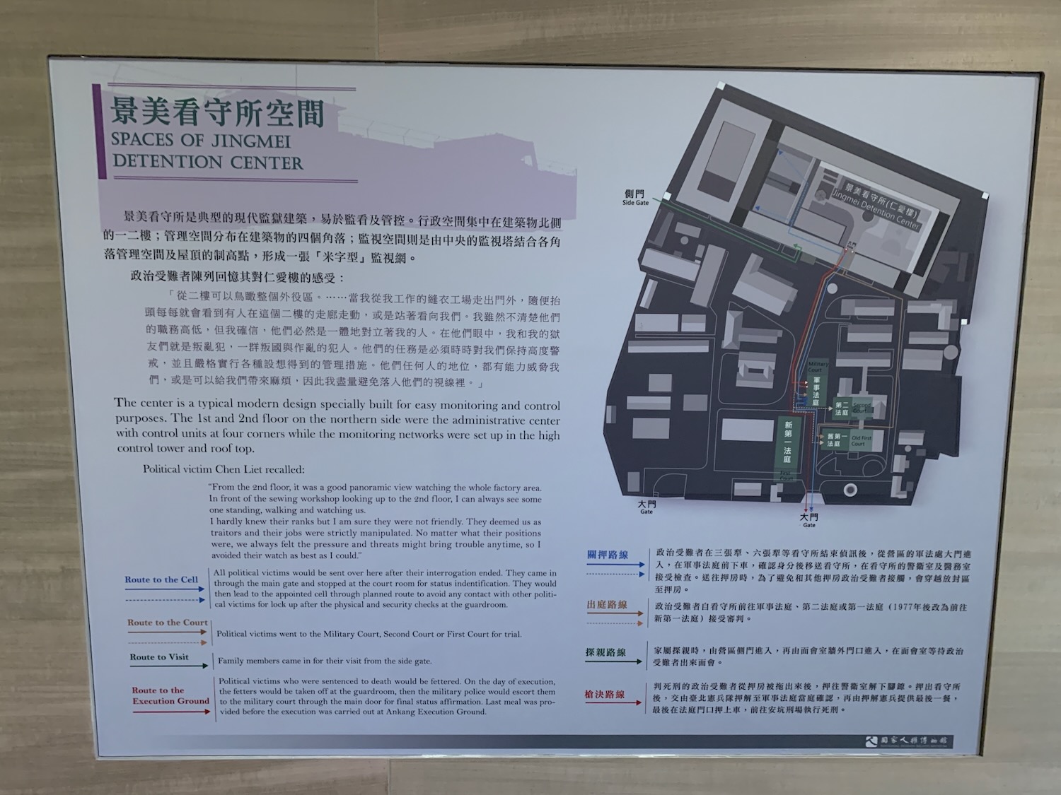 這次的景美紀念園區的最前身是軍法學校,後來經歷許多變動,在白色恐怖時期成為審判、關押政治犯的場所,許多受難者在這裡被判刑、長期入監,或是移送綠島,甚至是判處死刑,在其他地方處決。