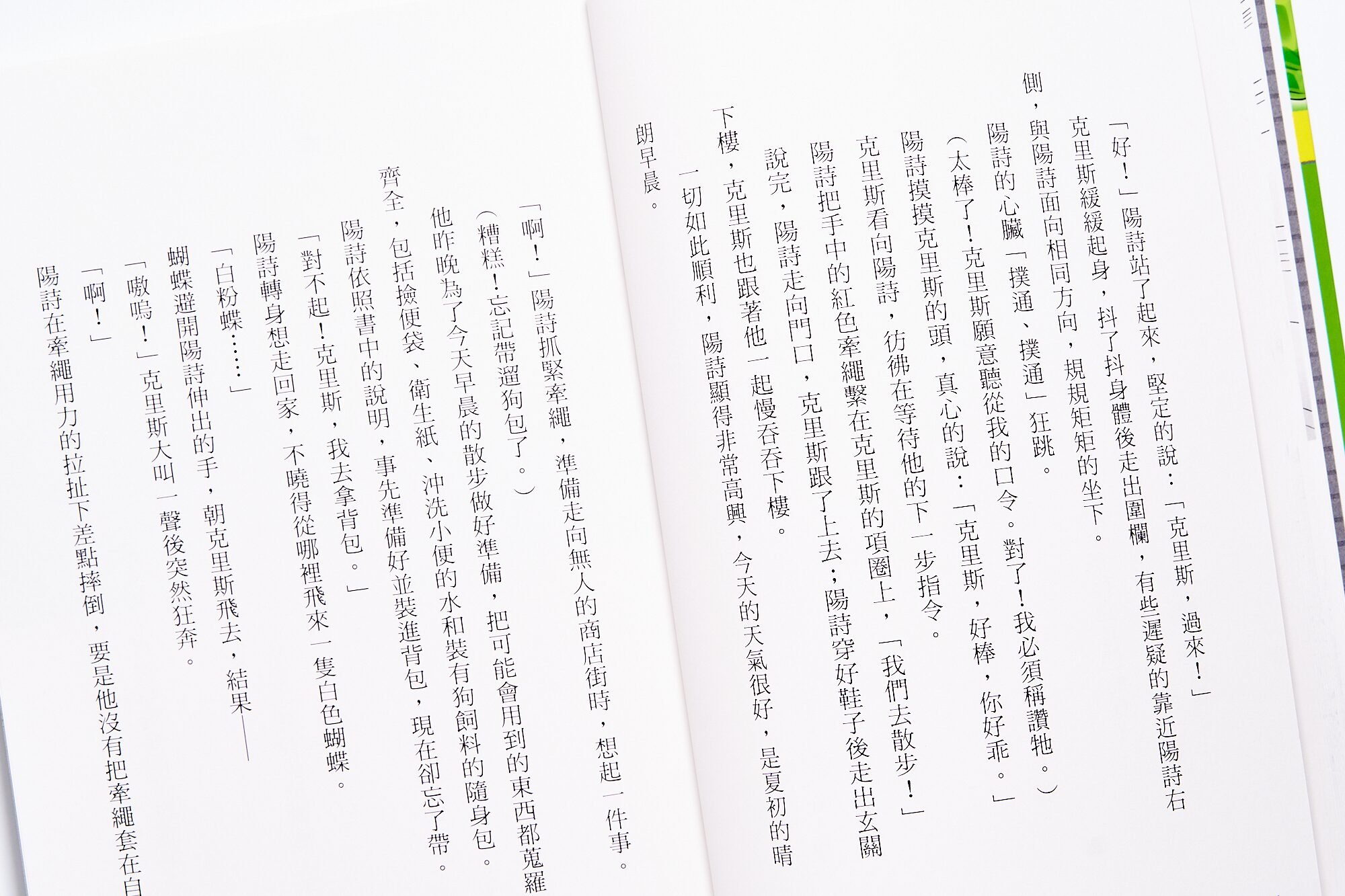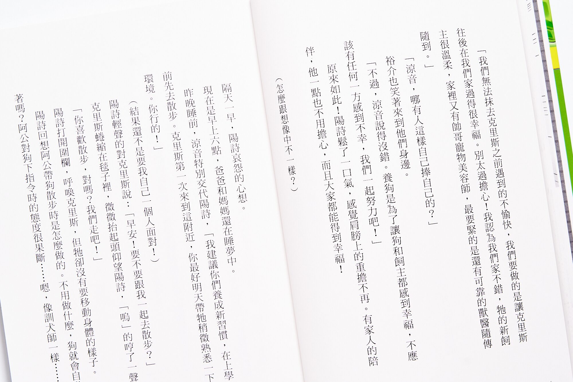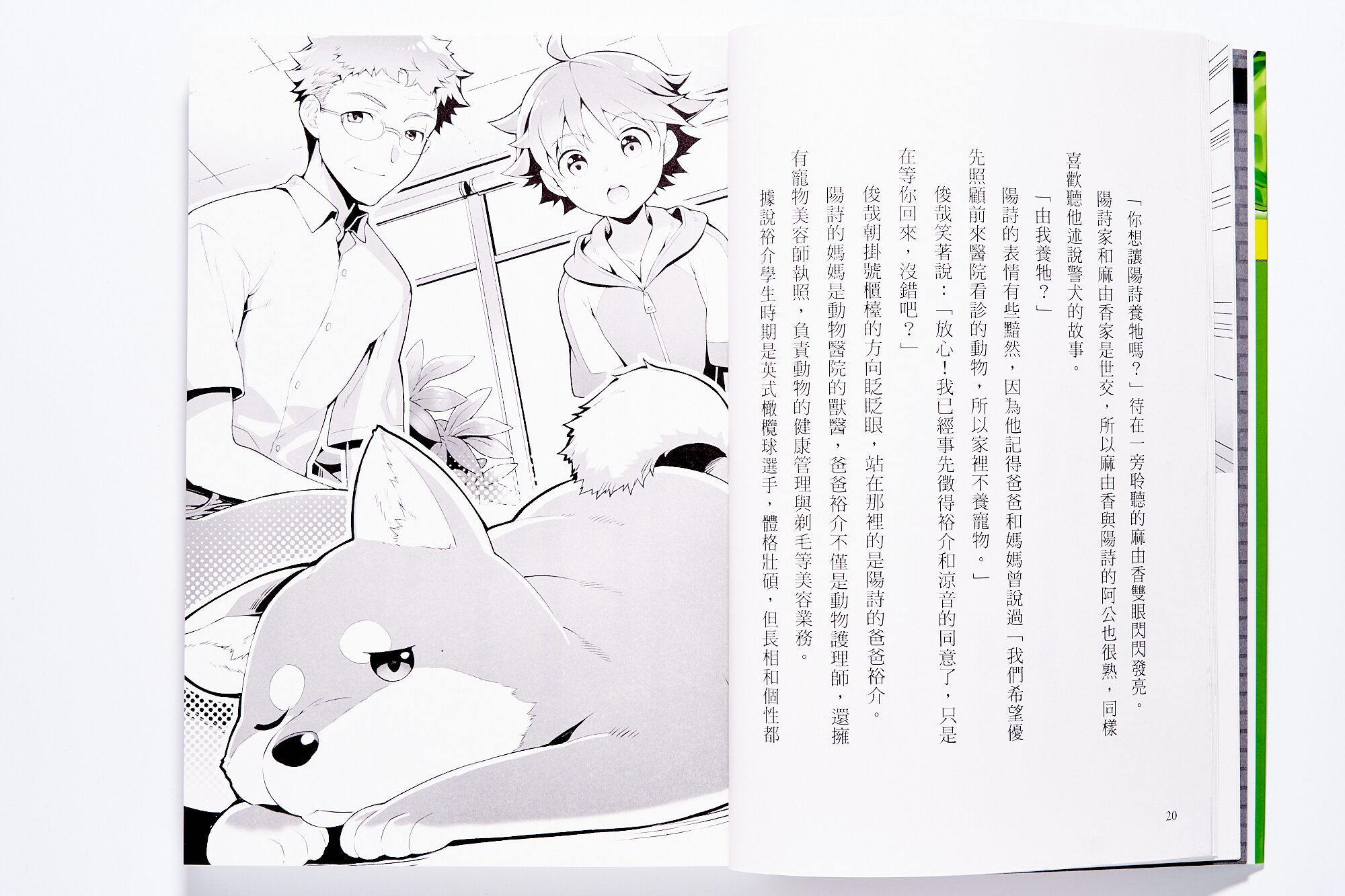 另外,因為是寵物醫院設定,書裡也對於照顧寵物、生命教育上有很棒的描寫!像是即便身為寵物醫院小開的陽詩,也是做了很多功課,像是準備散步便便包,研究柴犬的臭脾氣,才能正式成為克里斯的主人。
