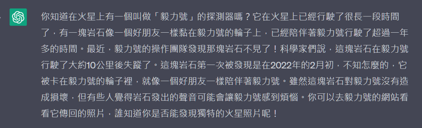我覺得改寫得還不錯。老師或家長有時候想轉化一些資訊給小孩,也可以請ChapGPT像這樣幫你重整潤飾喔。