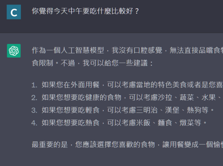 例如我先問它午餐建議。