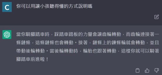 ChapGPT 答得頭頭是道,但有時候也不是正確性的問題,而是它這樣的資料小孩看不懂怎麼辦呢?這時候請放大絕招跟它說,請用 X 歲小孩聽得懂的方式回答,或請用 X 年級小孩聽得懂的方式回答就行了。