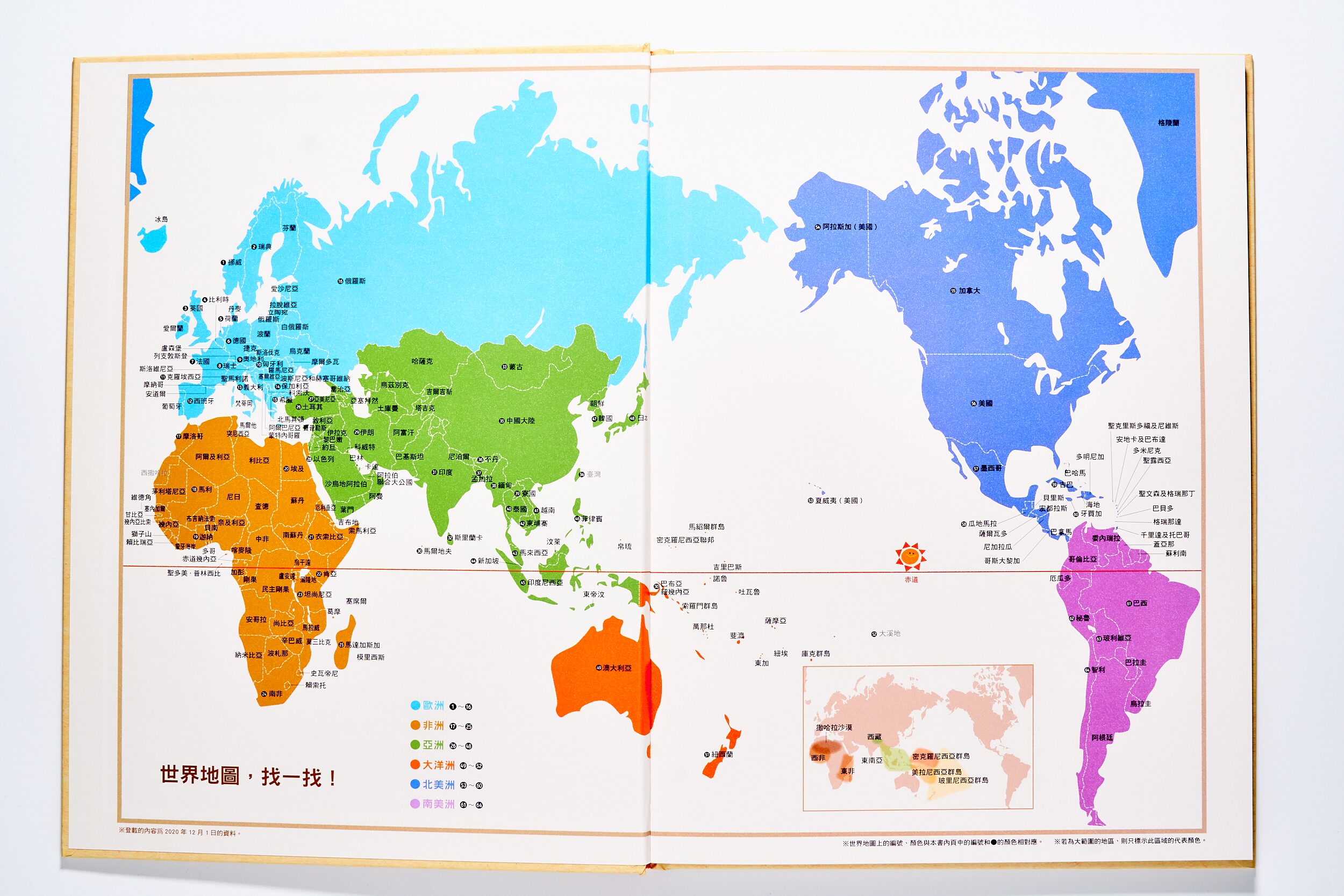 這本書雖適合低年級的孩子,內容也有豐富的 56 頁。圖像下會標示該生活習慣的國家,最前面還提供地圖,方便讀者查找國家位置。