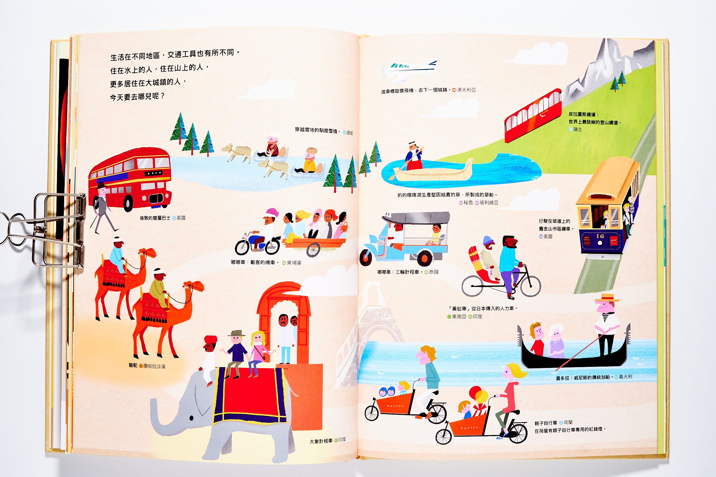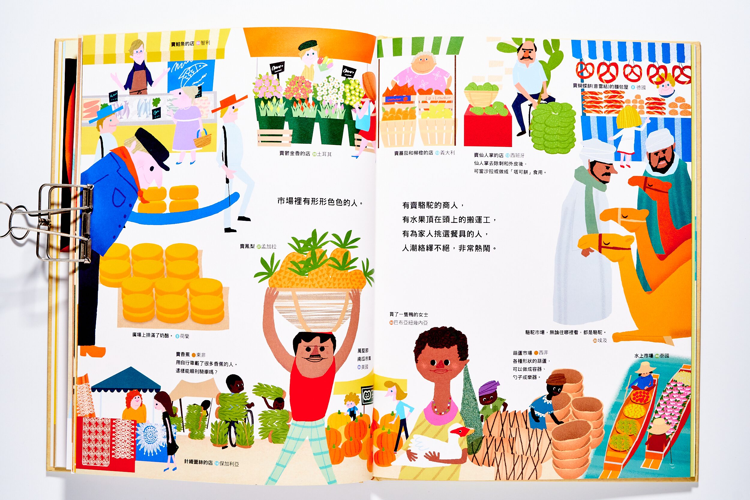 我滿喜歡這本書營造的場景感。例如市場、交通工具等畫面,像是大家都在同一個地方,進行同一件事,只是用的方法不同,就是地球村的感覺。