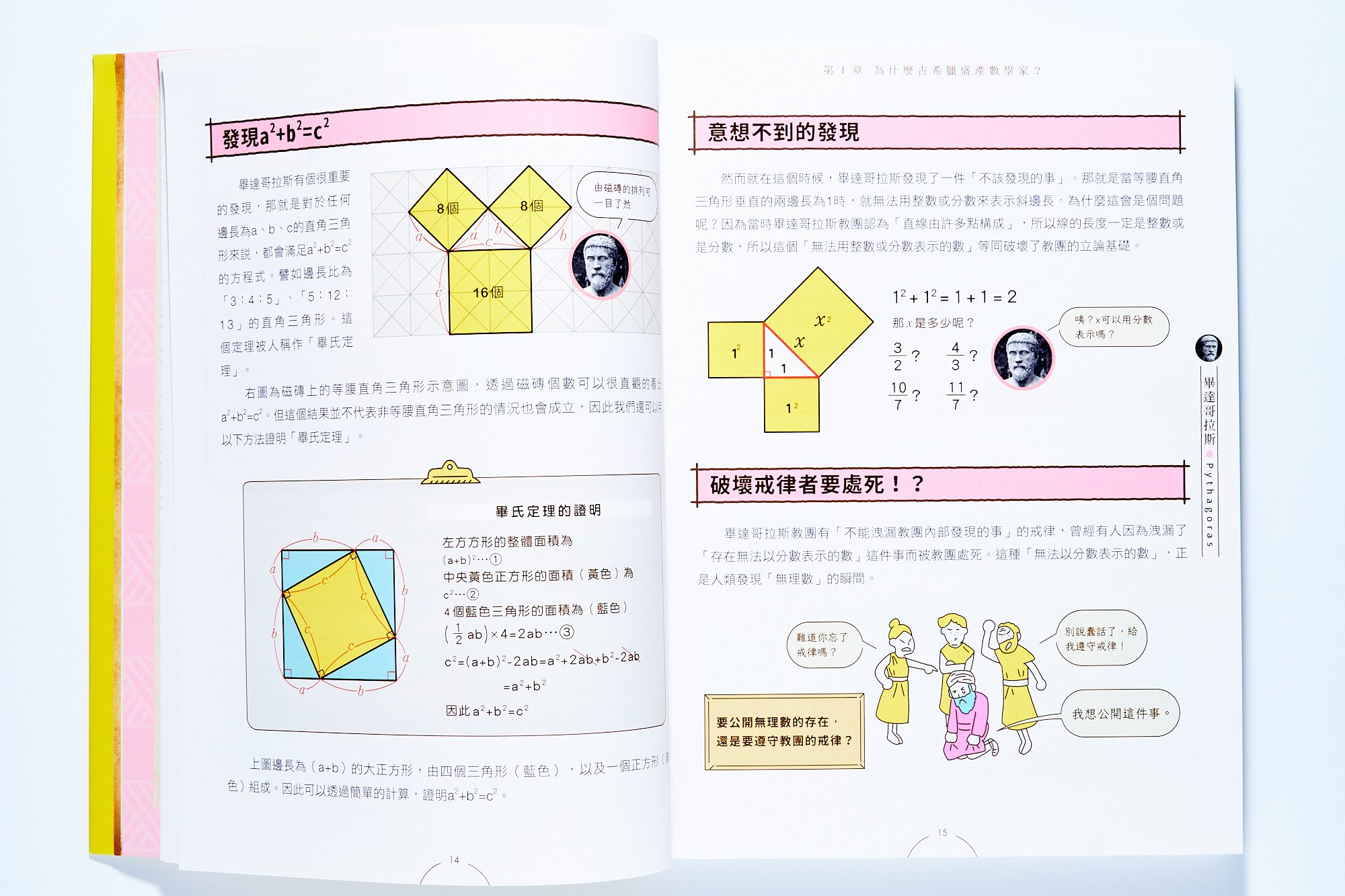 所以當你翻開這本書時,我推薦你可以先從目錄開始看起(小孩可以不用,沒關係),你就會發現,怎麼國小、國中的數學內容是早在古希臘時期就有了。