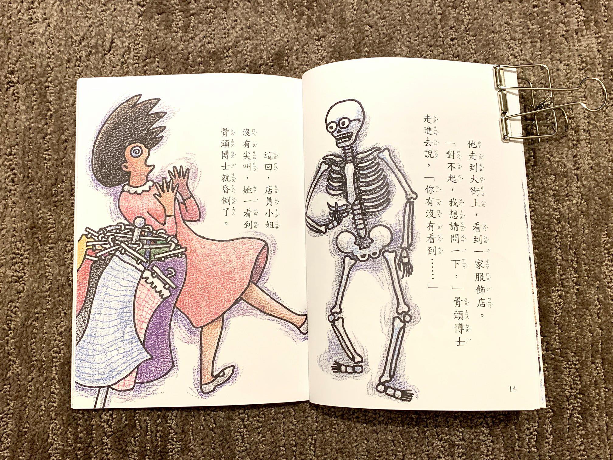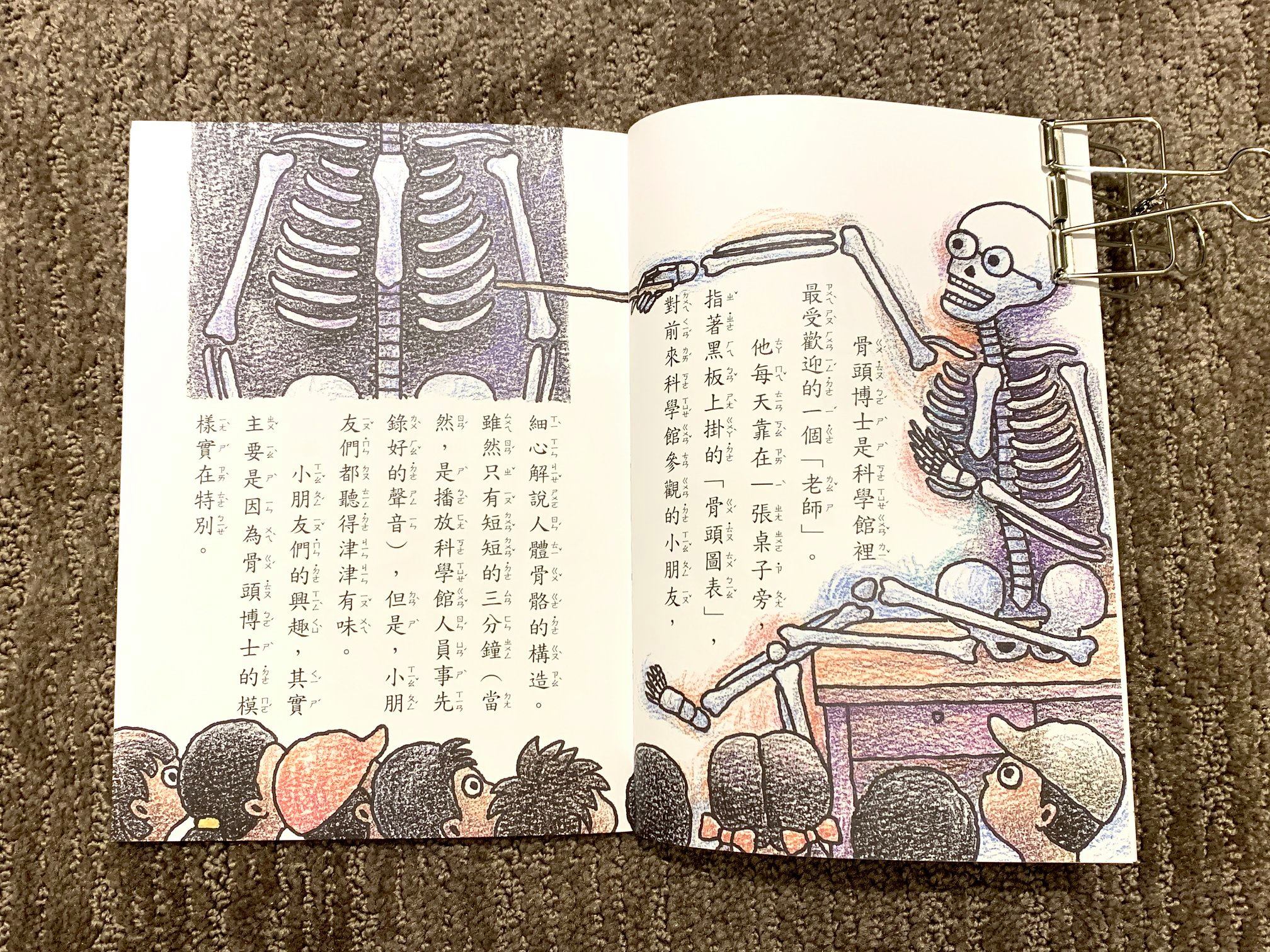 作者管家琪老師,從學校實驗室、科學博物館裡的人體骨骼標本,構思出一個不小心缺了根肋骨的骨頭老師。只不過骨頭老師沒有想像中的聰明(因為沒有大腦),不知自己其實不受歡迎(因為很嚇人)、也不知道怎麼跟有肉的骨頭人溝通(就是我們啦)……那該怎麼找到肋骨啦!!!
