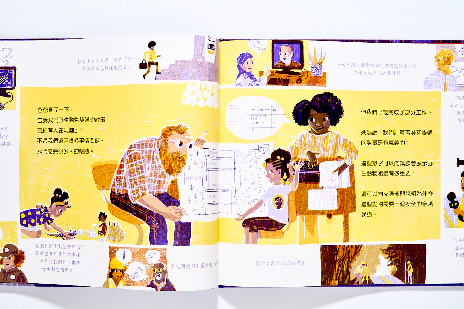 但就是因為孩子,他們的意見與權利才不能這樣輕易被無視,就像是書裡爸媽們願意尊重孩子的生態廊道提案,並且一起努力整理資料,準備提案。