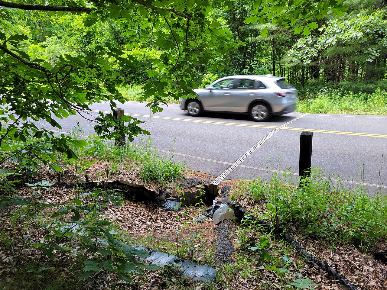 位於美國麻州的實際位置,馬路上有著孔洞的通道就是生態廊道。(照片來源:John Phelan, CC BY 4.0, via Wikimedia Commons