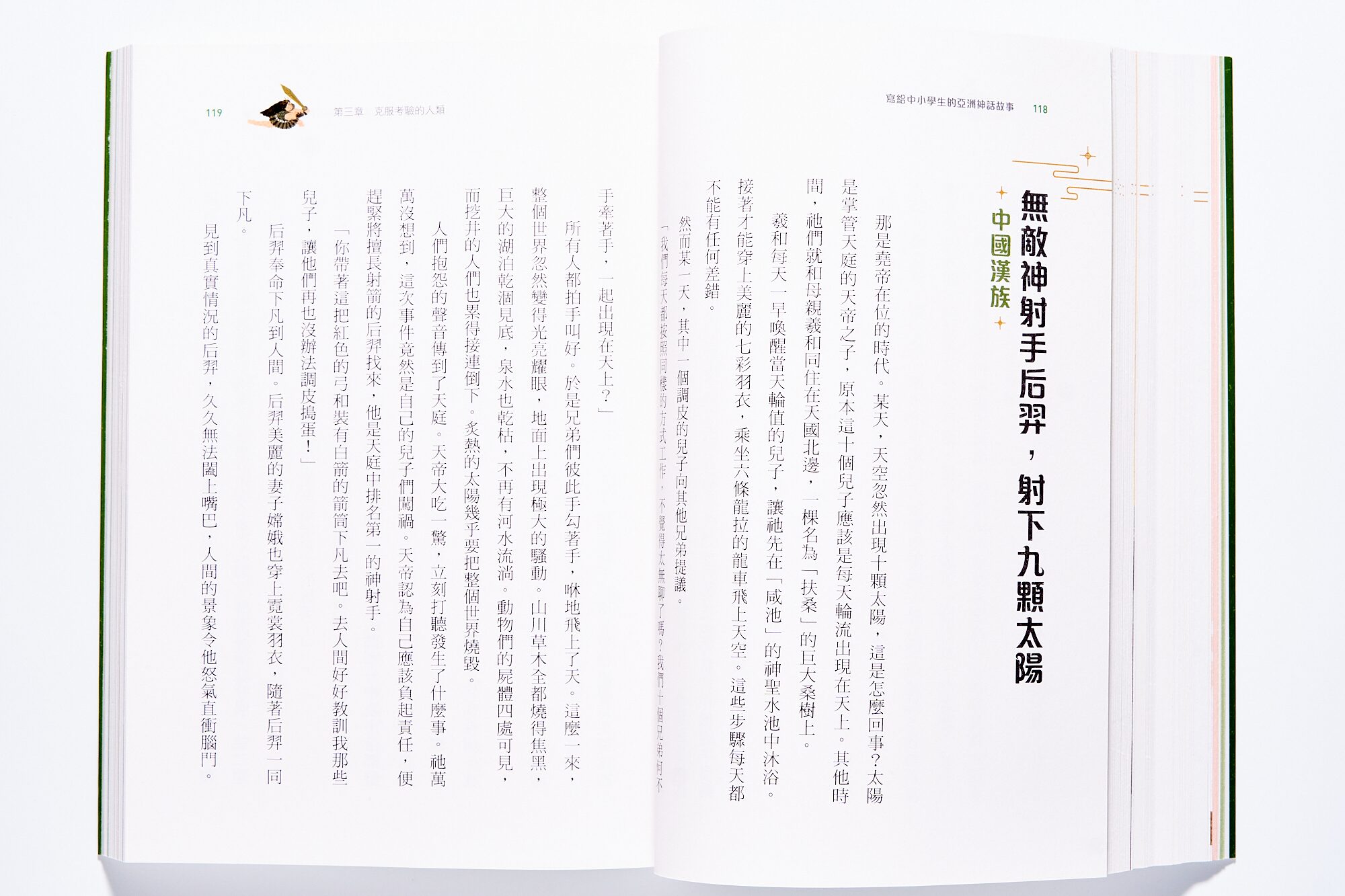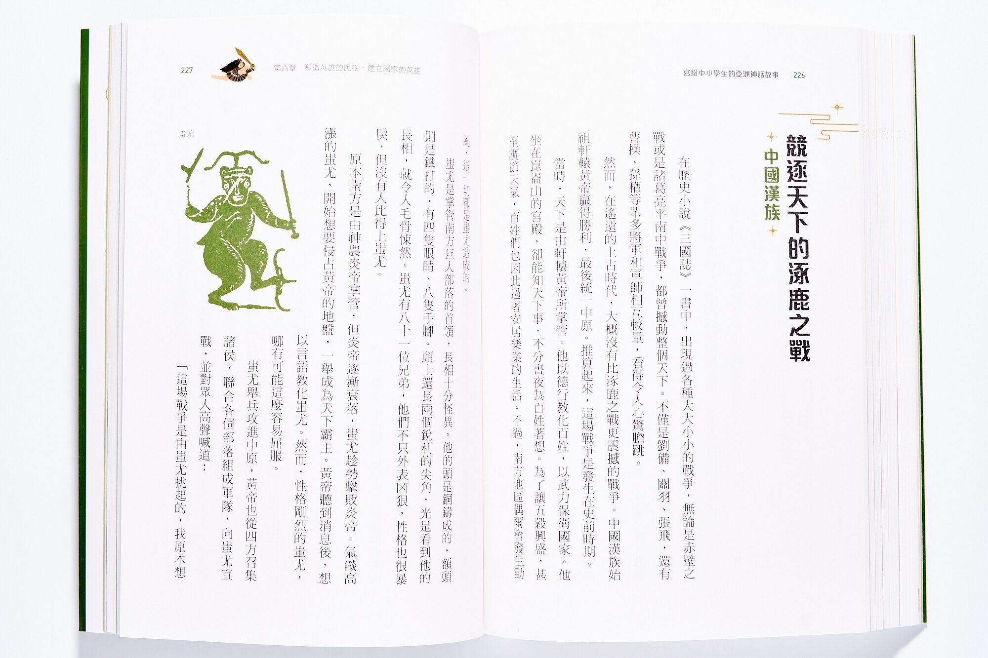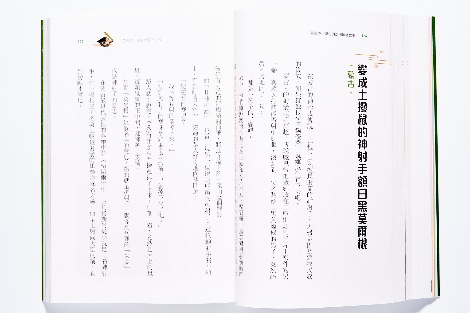 《寫給中小學生的亞洲神話故事》收集了來自於亞洲國家的神話故事,包含中國、印度、日本、蒙古、波斯、美索不達米亞等等,除了亞洲神話本來就是少見的題材外,作者也把這些故事分成世界生成到毀滅、人類誕生、英雄崛起、或是與自然共存身等大主題,並且在每組故事ˋ主題前都會特別撰寫導讀,讓孩子知道為什麼會有這些神話誕生,以及這些神話怎麼對人類社會造成哪些影響。