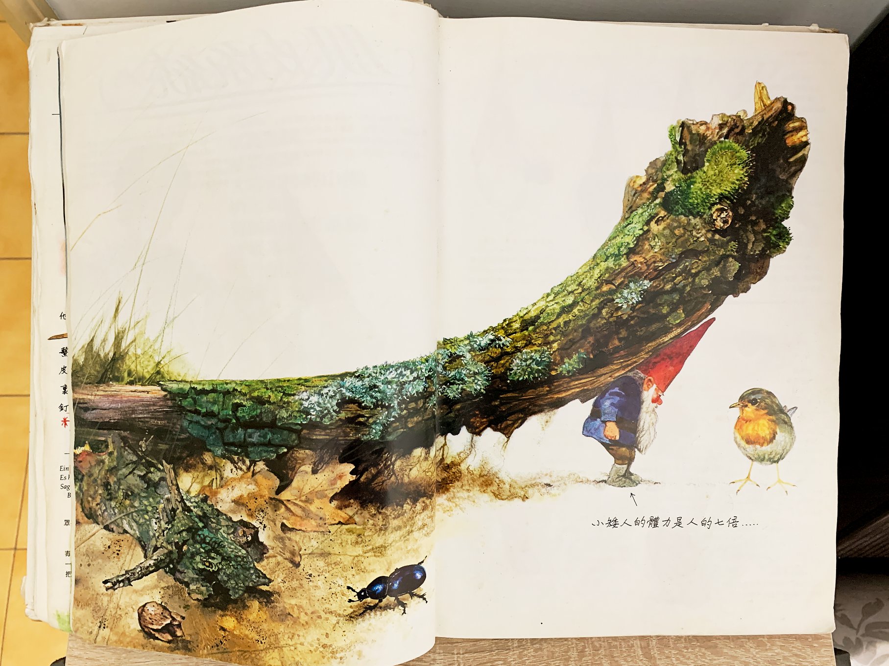 沒想到竟然在圖書館還可看到這本《小矮人》,即便已經泛黃了,但是每翻開一頁,又立刻想起之前的回憶。唯一有差別的是,可能是我長大了,所以覺得書沒有印象中的大本。