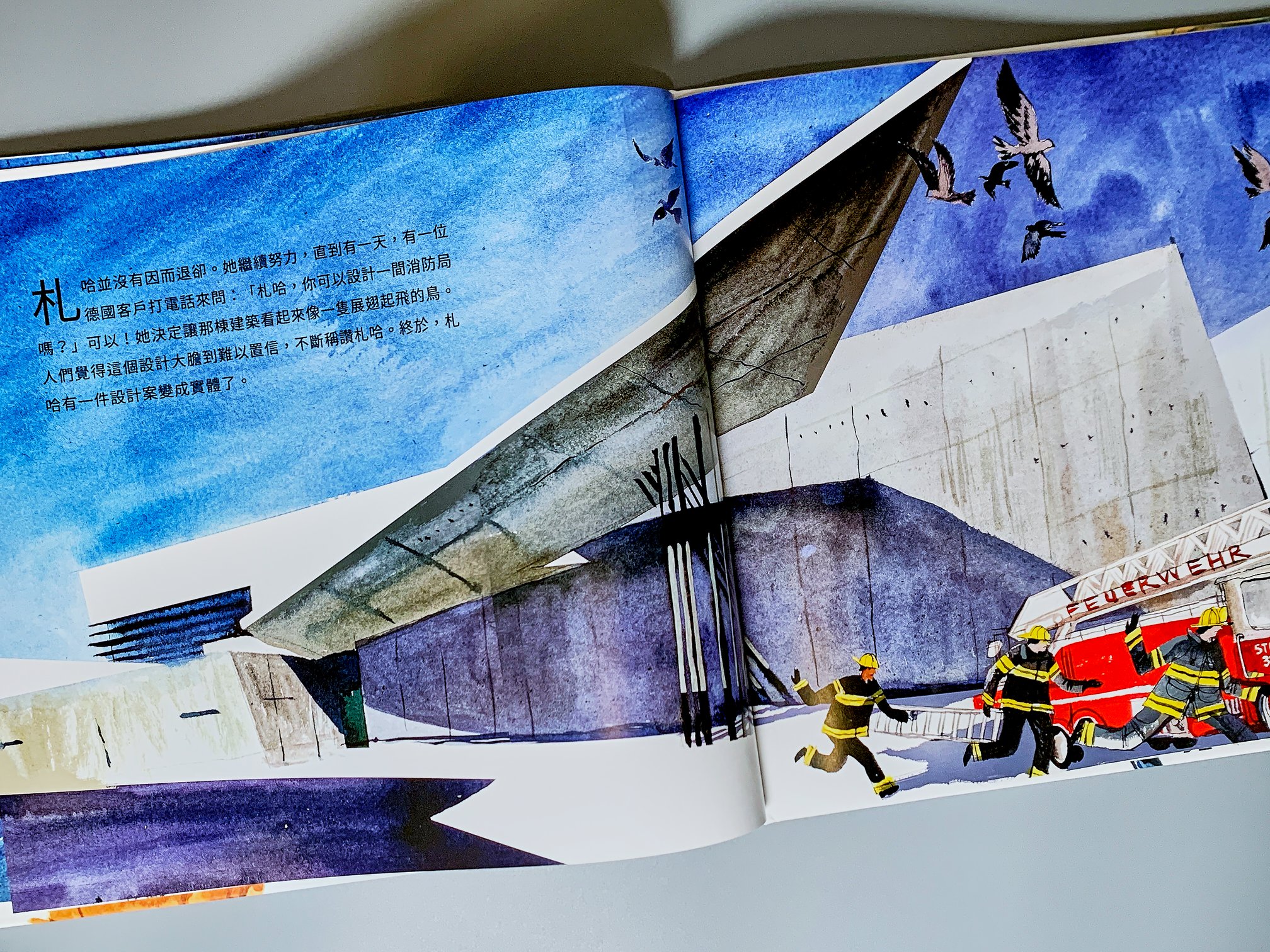因此,她的設計圖總是頻頻獲獎,但是實際上確實因為現實不可行,所以一棟也蓋不出來。我很喜歡故事裡的這個情節,像我就用來問小朋友:你是要降低難度?還是維持風格?