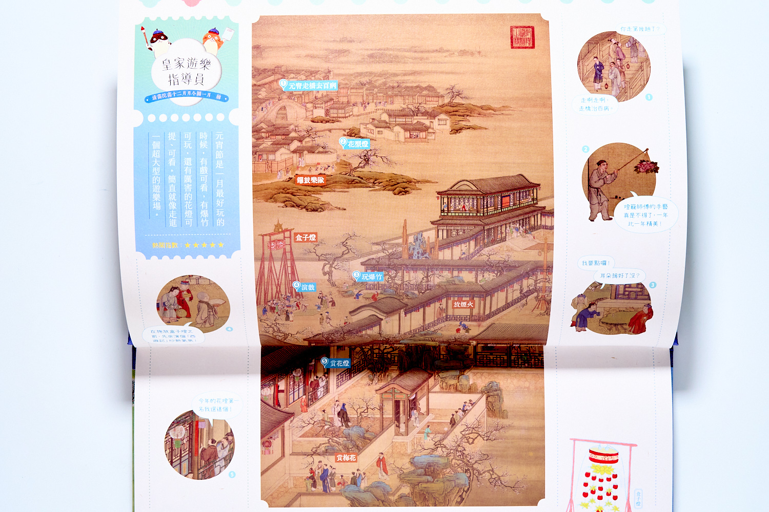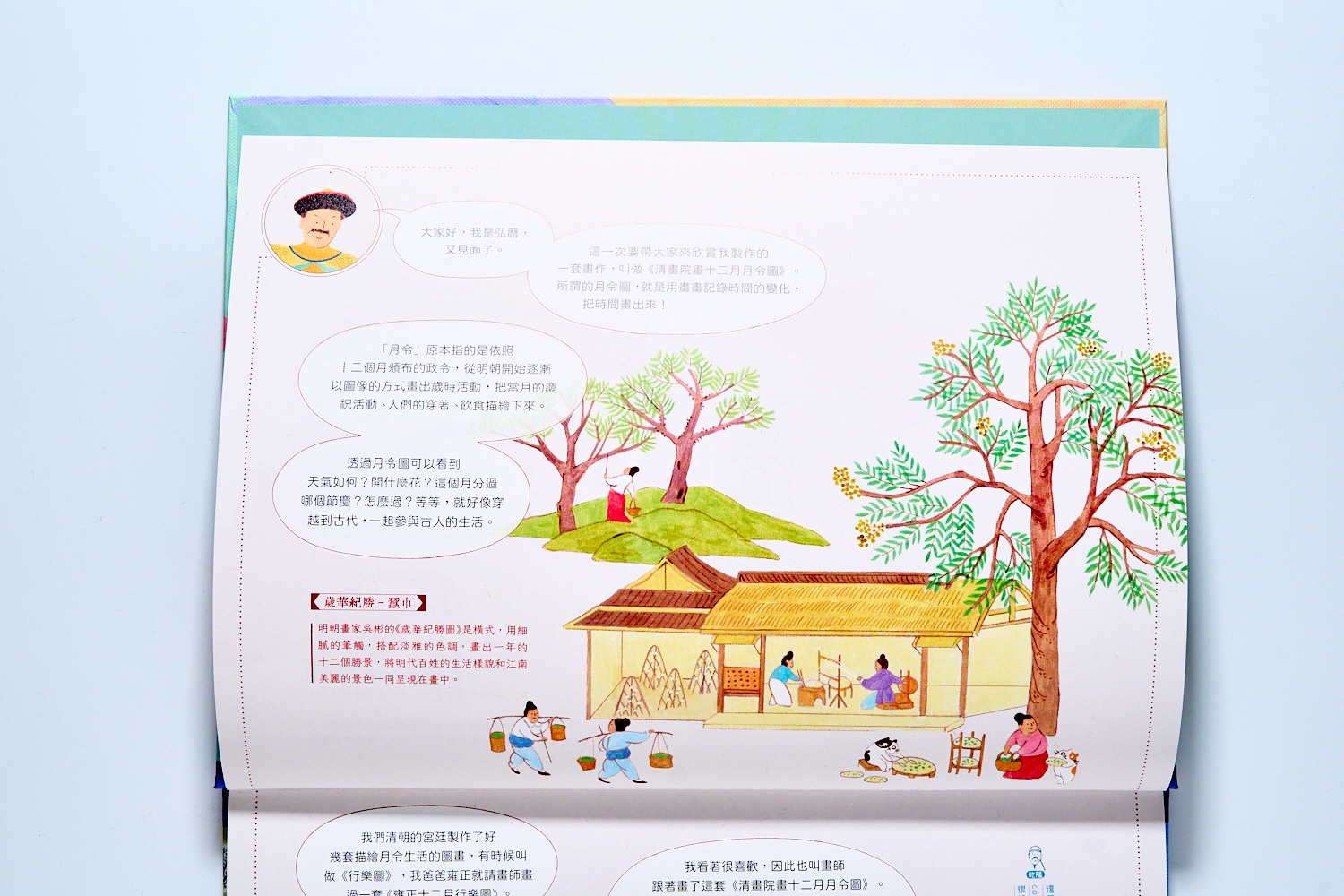 來自於上本書《故宮好好玩1:從前從前皇帝有座動物園》的新作,不過這次主題卻是在皇宮內的遊樂生活,但主角還是我們的乾隆皇。這次所使用的畫作則是《清畫院畫十二月月令圖》,這幅畫一共 12 幅,是乾隆皇從他的雍正爸爸獲得靈感,命令宮廷畫家描繪出一年裡 12 月份的生活。
