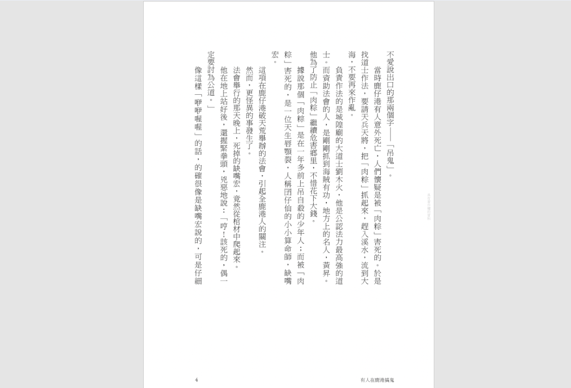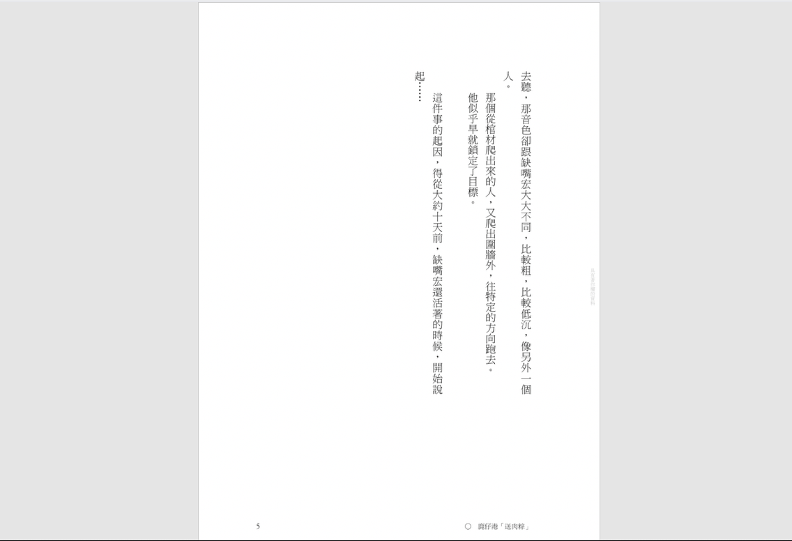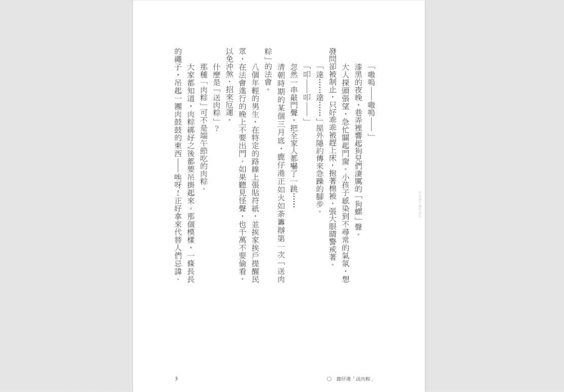 將鹿港的傳說與「送肉粽」習俗,創作成一部人鬼互動與歷史知識的小說。