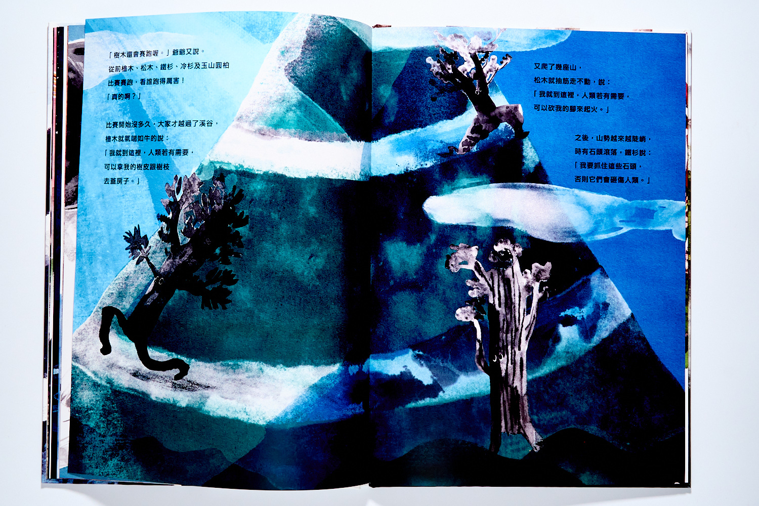 像是檜木、松木、鐵杉、冷山、玉山圓柏賽跑的故事,聽起來可愛又有趣,但仔細看賽跑的結果,不同的樹種位置位在不同的高度,其實就是族人們觀察數種分布的結果,並且也是族人如何運用這些樹種的歷史記憶。