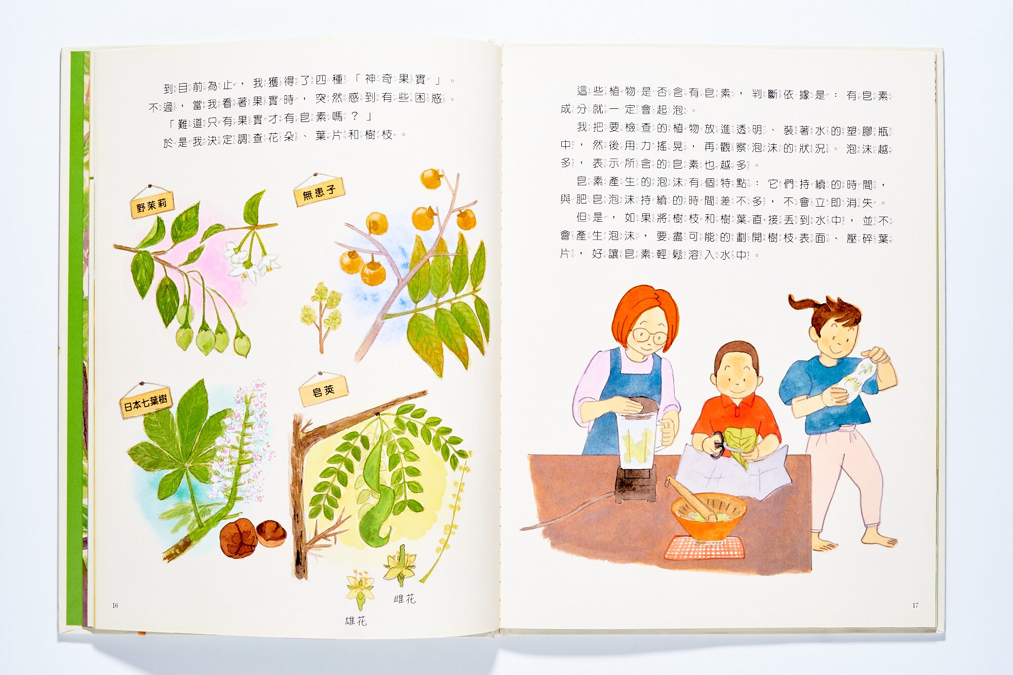 那植物的名字是??又為什麼會起泡呢?已經身為大人了,查資料也不再是麻煩事。雖然過程中出了不少小插曲,但是卻獲得很多寶貴體驗、以及和孩子一同投入的樂趣,甚至還能出版這本書。