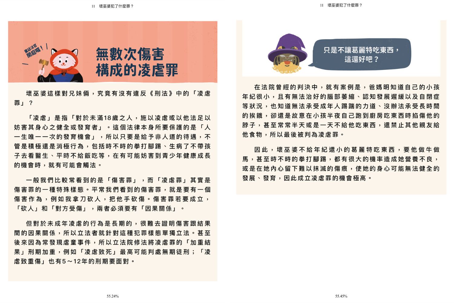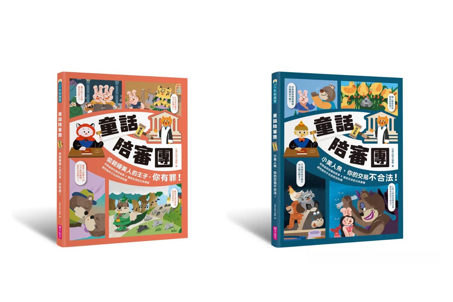 這套書的第一冊講刑法、第二冊是民法。每本都有二十篇,各章以不同的童話或故事場景為主題。