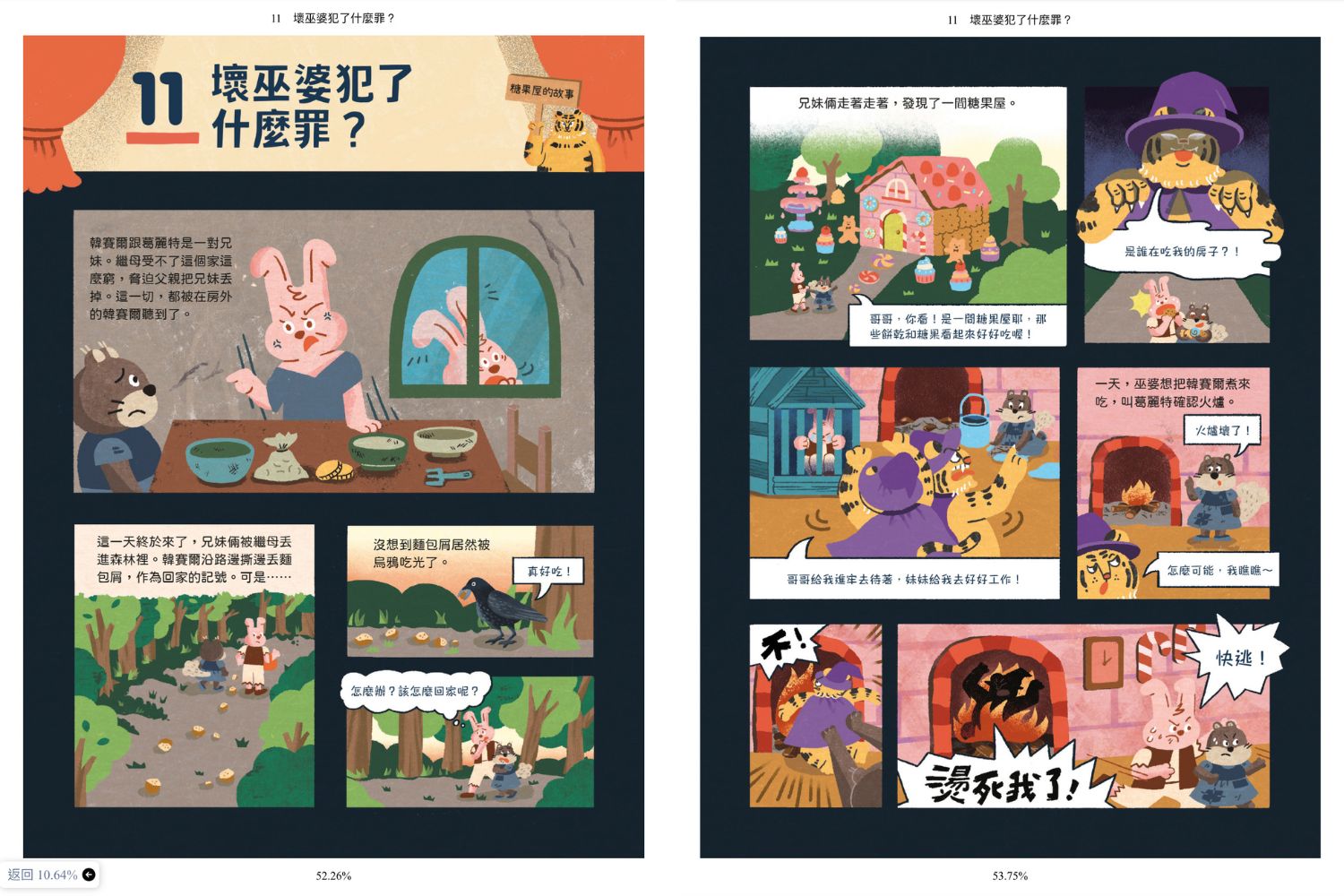 童話事件都是兩頁簡要可愛漫畫,有幫助大家回憶童年的作用。(此為電子書頁面)