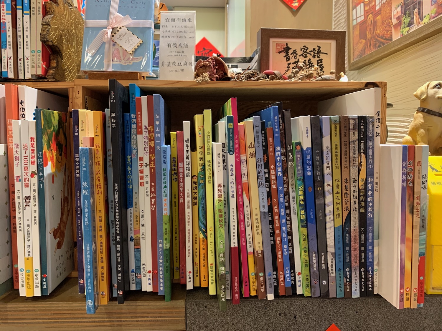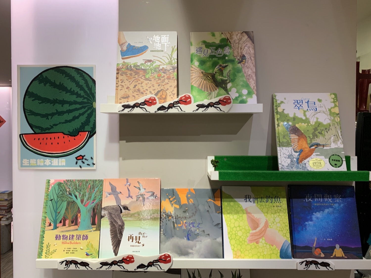 繪本很棒與經典,特別是臺灣創作者的繪本都可以在這裡找到,而且還有一面生態繪本牆,看到邱承宗老師作品好好的擺在牆上,就覺得很感動——我明年聚會是不是要改在這裡辦?有點心動!