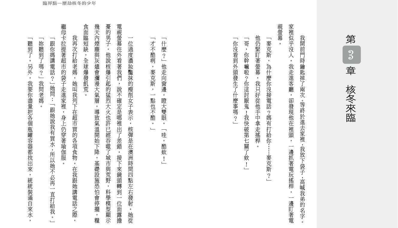 在十七歲的費恩看來,那天跟往常並無不同──早上睡過頭,急著趕搭校車,熬過一堂又一堂的課,還要在他心目中最美好的女孩面前維持形象。然而那天跟往常確實截然不同,因為就在地球的另一頭,核彈爆炸了。