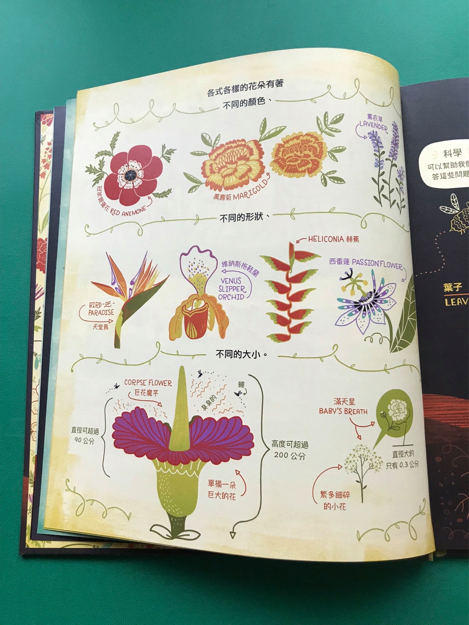 還有一點也很不錯:書中名詞,包括特定植物構造跟植物種類,都標上英文。方便雙語學習以及上網查找資料。