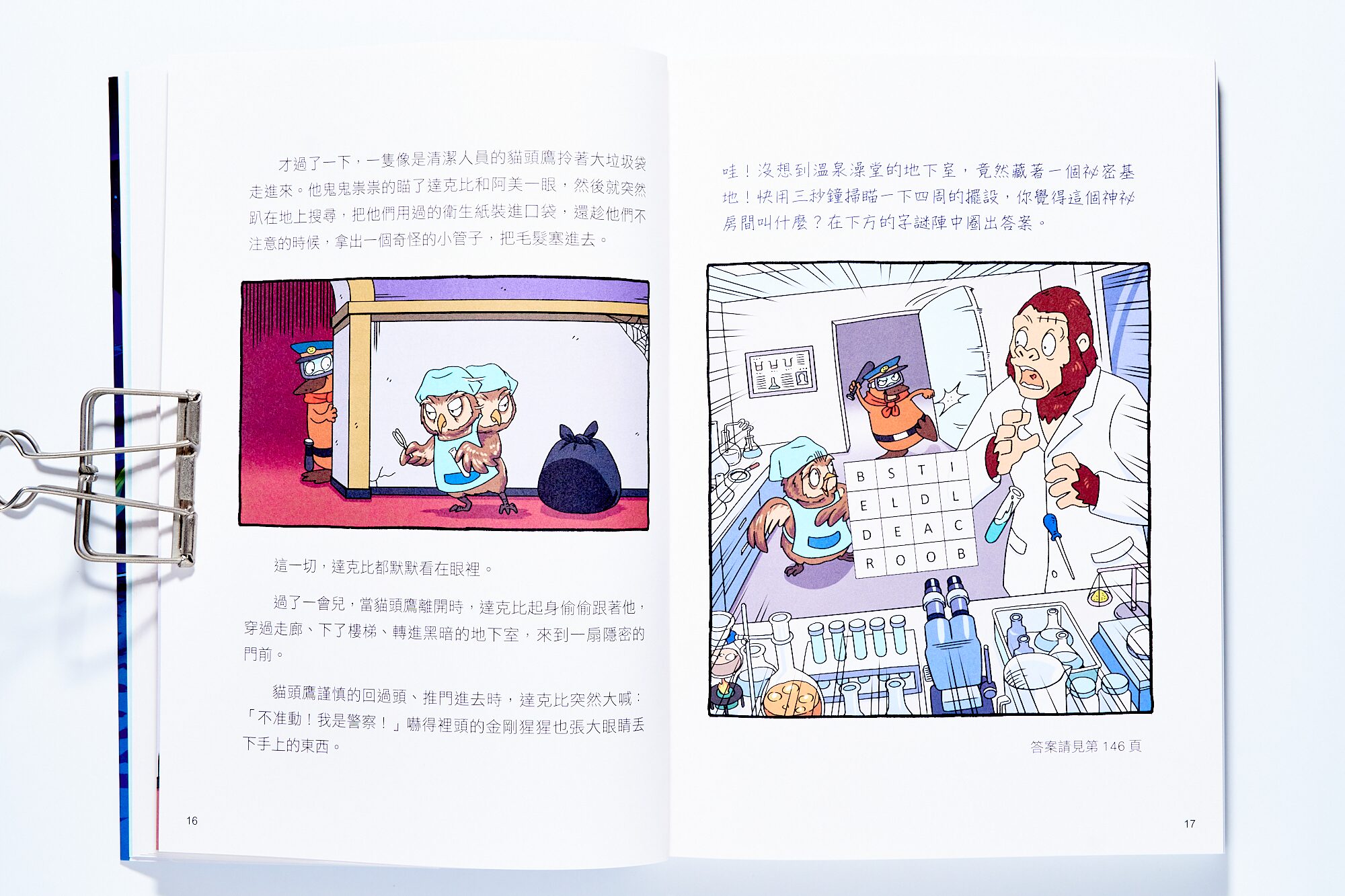選擇調查對象後,就要開始仔細閱讀文字了,當中不僅藏有線索,還有科學謎題等著孩子解答(點擊圖片可以放大瀏覽更多內頁)