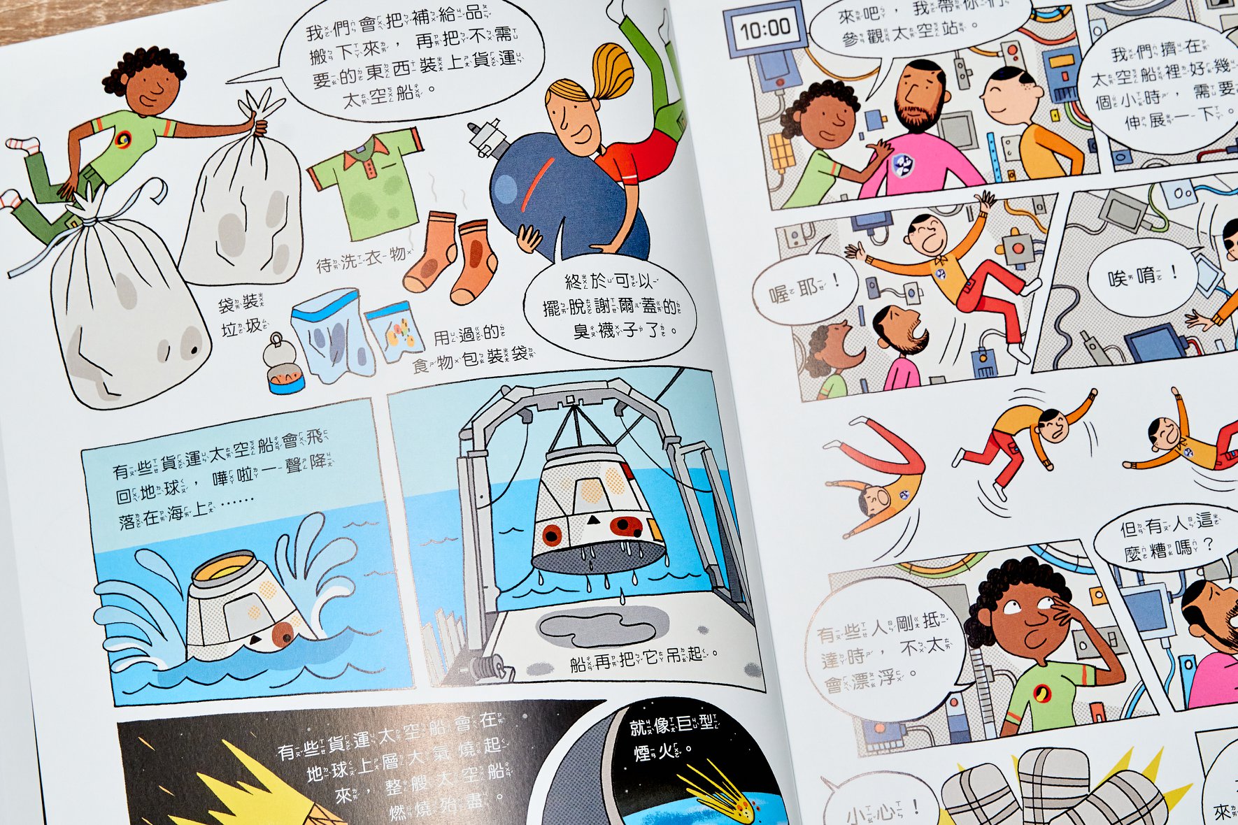 《24小時大發現:飛向太空站》是本有趣、並且別出心裁從少見的太空人視角出發,讓孩子認識太空人有別於電影拯救人類的英勇印象,更多的是他們更像科學家。